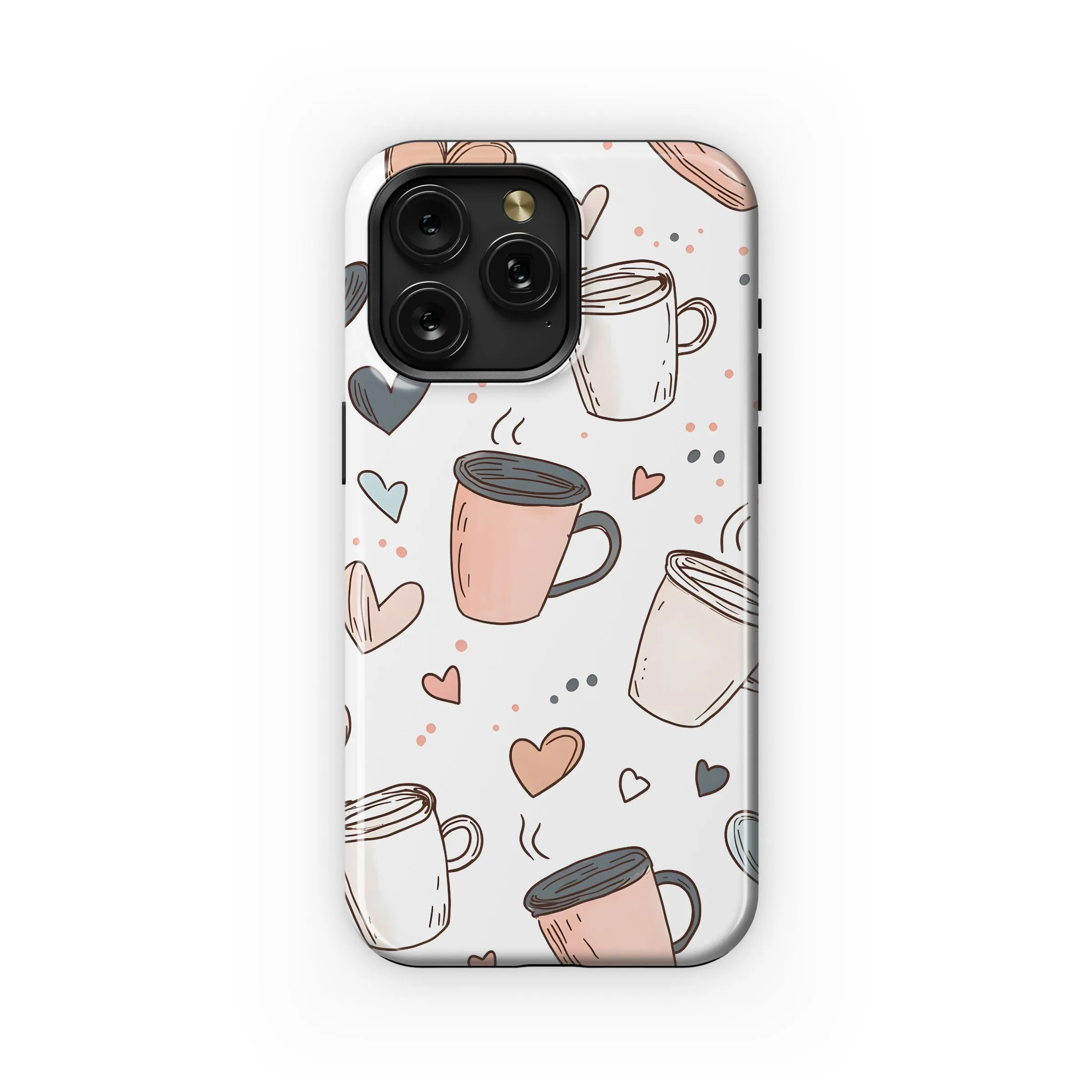 Cozy Academia Books and Coffee Illustrated Pattern Phone Case Cover for iPhone 17 Pro Max 16 15 13 Samsung S25 S24 Pixel 8689