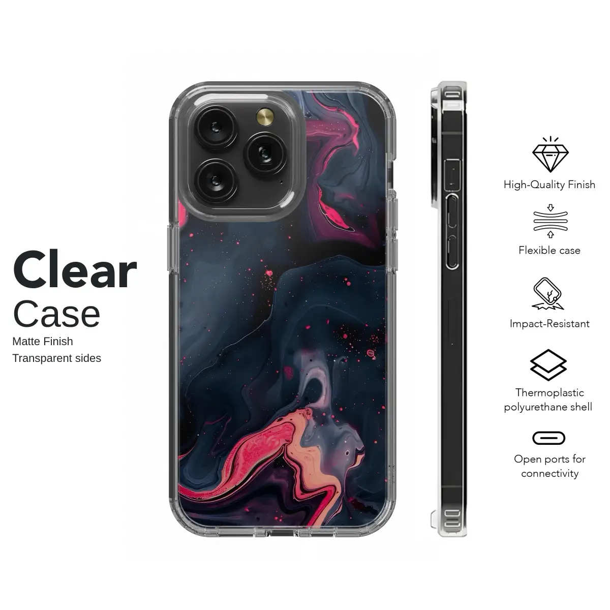 Abstract Cosmic Swirl Pink and Navy Liquid Marble Phone Case Cover for iPhone 17 Pro Max 16 15 13 Samsung S26 S25 Pixel 10111