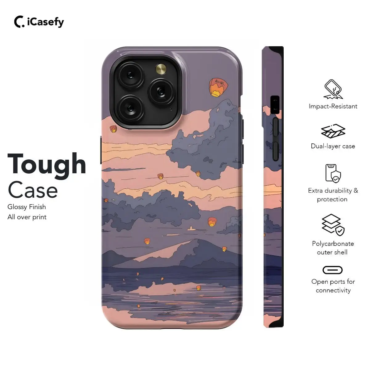 Immerse yourself in the serene beauty of Japanese landscapes with our Anime Lofi Japanese Mountain River Clouds phone case. Inspired by the tranquil scenes of traditional anime and lofi aesthetics, this case transports you to a world of peace and serenity every time you glance at your device. Featuring a breathtaking depiction of misty mountains, meandering rivers, and fluffy clouds, it's a true masterpiece of artistry and style. With its premium materials and precise fit, this case not only safeguards your phone but also adds a touch of ethereal beauty to your everyday life. Elevate your mobile experience with a touch of Japanese tranquility wherever you go.