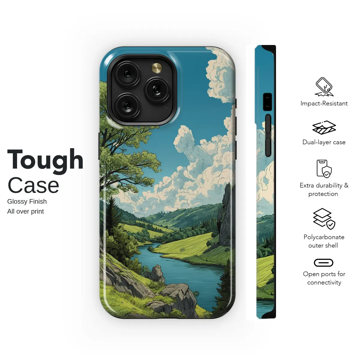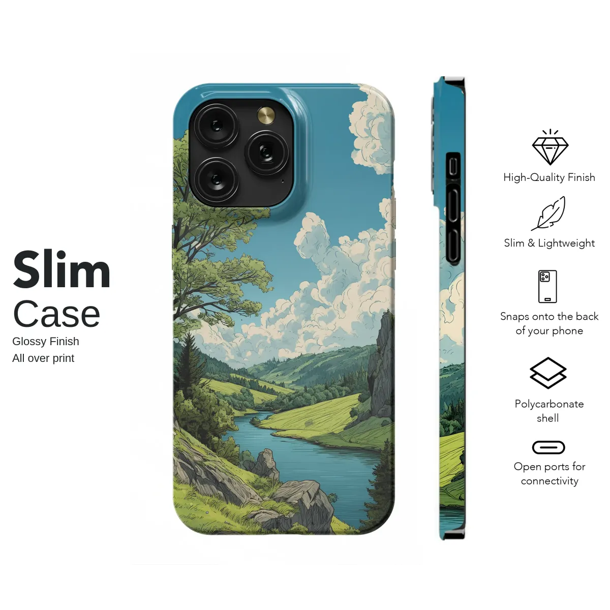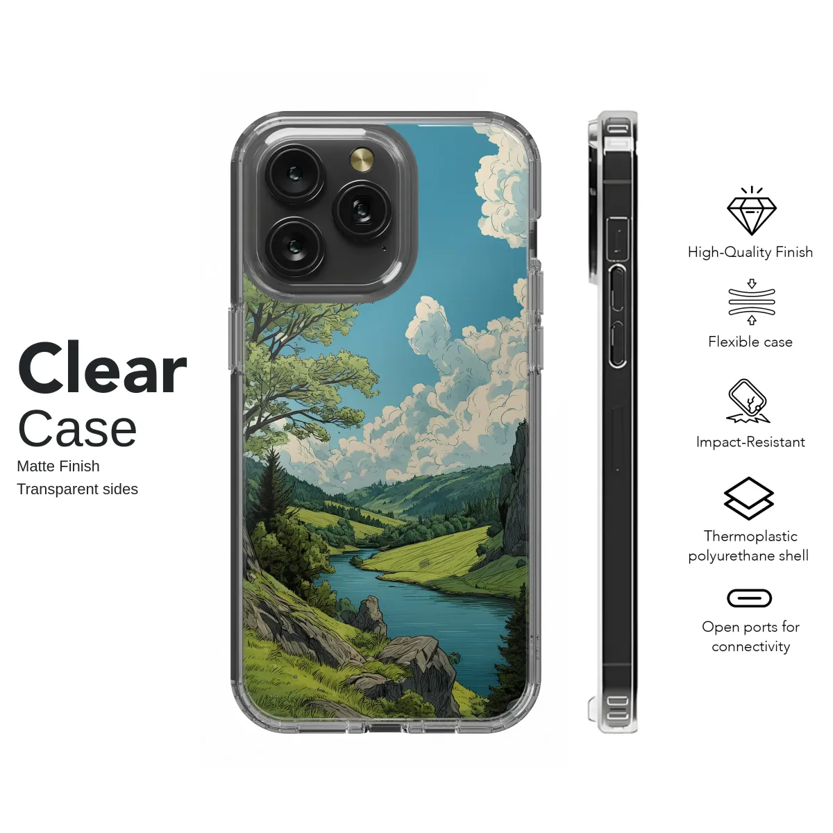 Anime Style River Valley Landscape Illustration Phone Case Cover for iPhone 17 Pro Max 16 15 Plus 14 13 Mini Samsung S25 S24 Pixel 10 9 9013 - Image 1