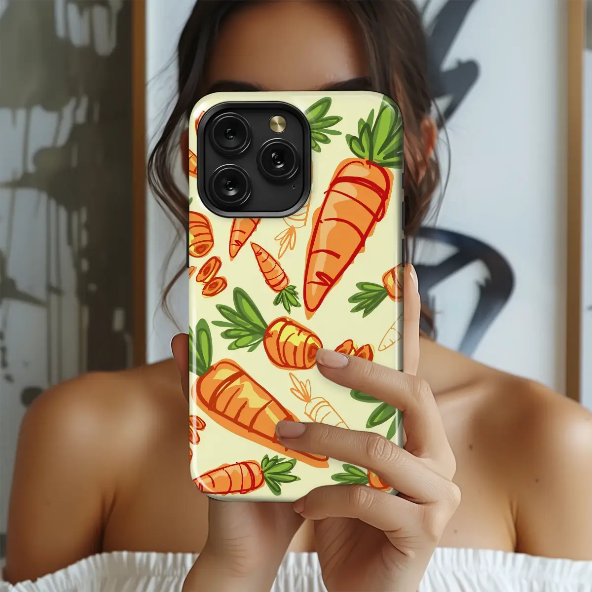 Artistic Carrot Pattern Whimsical Vegetable Design Phone Case Cover for iPhone 17 Pro Max 16 15 13 Samsung S26 S25 Pixel 9750