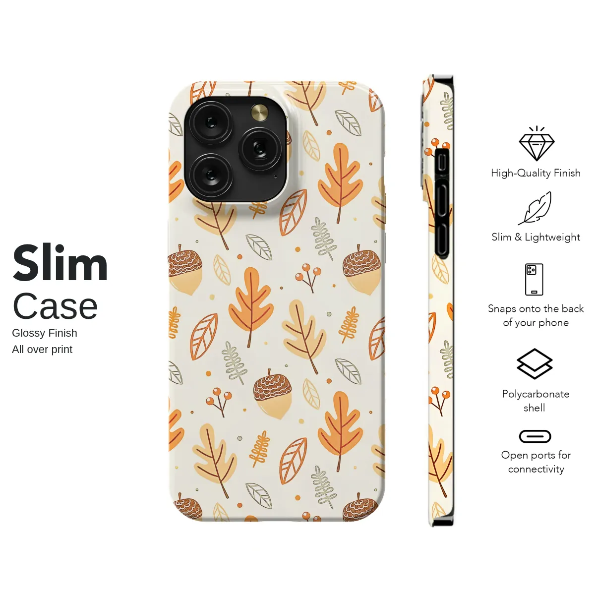 Embrace the enchanting spirit of autumn with this beautifully illustrated design that captures the magic of a forest floor bathed in golden hour light. A delightful pattern of whimsical acorns, rustic oak leaves, and delicate berries dance across a warm, textured canvas, creating a sense of cozy nostalgia. The rich, earthy palette of burnt orange, golden yellow, and deep brown evokes the feeling of crisp morning walks and evenings spent by a crackling fire. This charming botanical artwork is more than just a pattern; it’s a tiny piece of the harvest season you can carry with you, adding a touch of rustic elegance to your daily essentials. Perfect for anyone who cherishes nature-inspired aesthetics and the cozy vibes of fall, it serves as a constant reminder of autumn's gentle beauty. A thoughtful gift for a loved one or a special treat for yourself to celebrate Thanksgiving, this design wraps your favorite accessory in the undeniable warmth and charm of the season.