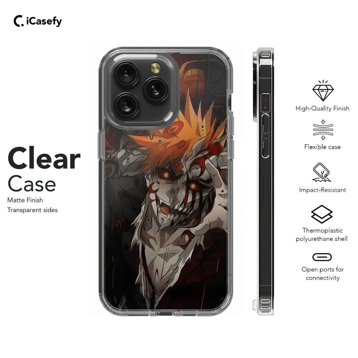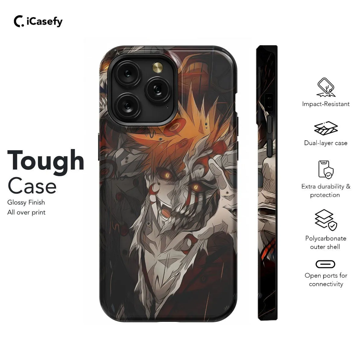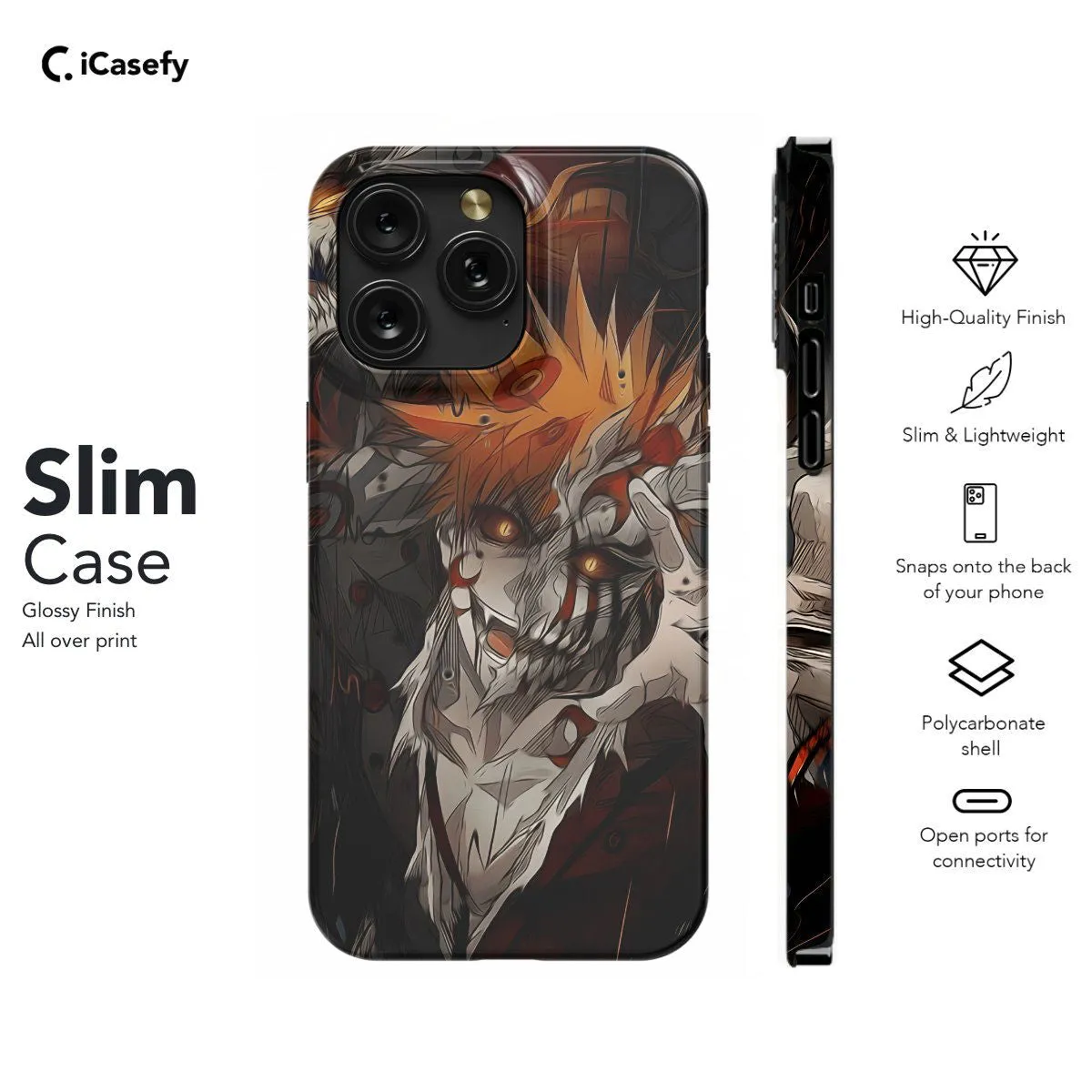 Carry the spirit of courage and determination with you wherever you go with this sleek phone case featuring Ichigo Kurosaki from Bleach. With his iconic orange hair and determined gaze, Ichigo embodies the essence of a true hero. Show your admiration for this legendary Soul Reaper and the epic adventures of Bleach while keeping your device protected in style. Let your phone become a testament to your love for anime with this eye-catching and dynamic accessory!