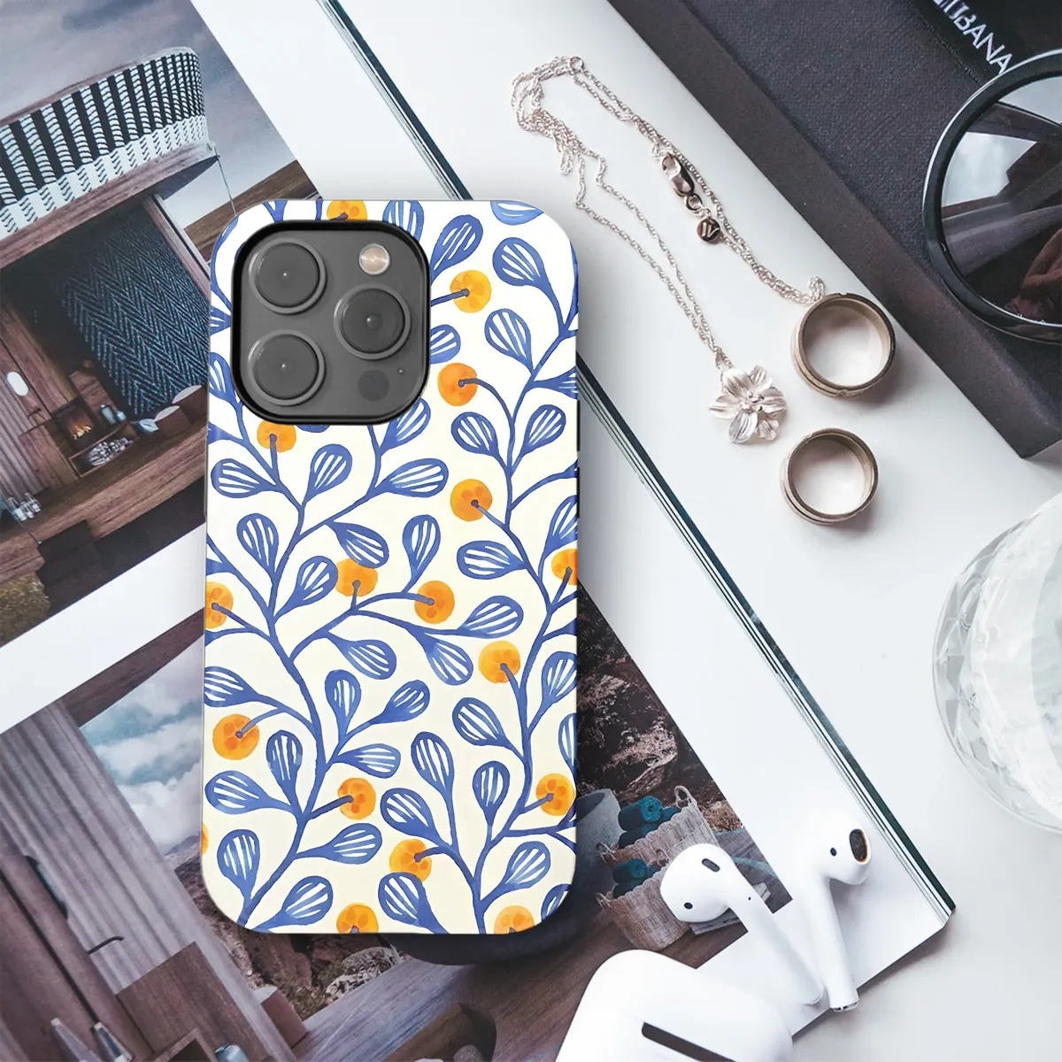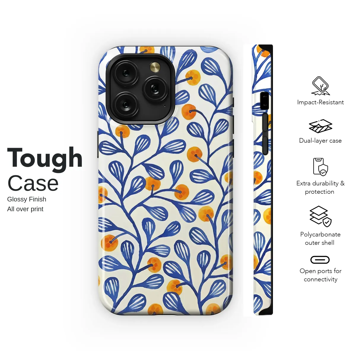 Blue Vine Orange Berry Botanical Illustration Phone Case Cover for iPhone 17 Pro Max 16 15 Plus 14 13 Mini Samsung S25 S24 Pixel 10 9 8741 - Image 1