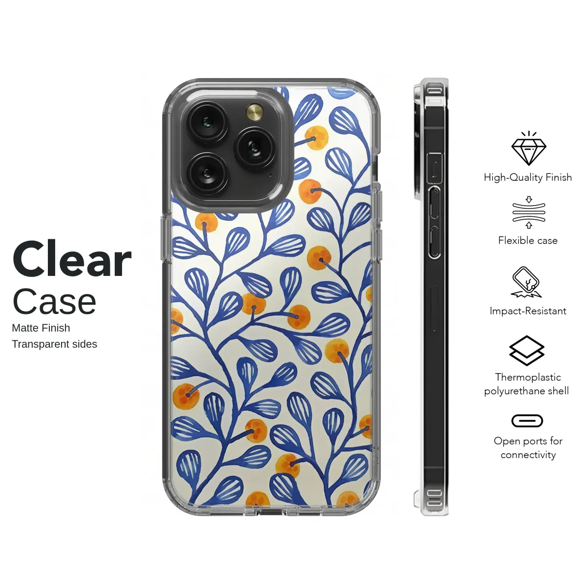 Blue Vine Orange Berry Botanical Illustration Phone Case Cover for iPhone 17 Pro Max 16 15 Plus 14 13 Mini Samsung S25 S24 Pixel 10 9 8741