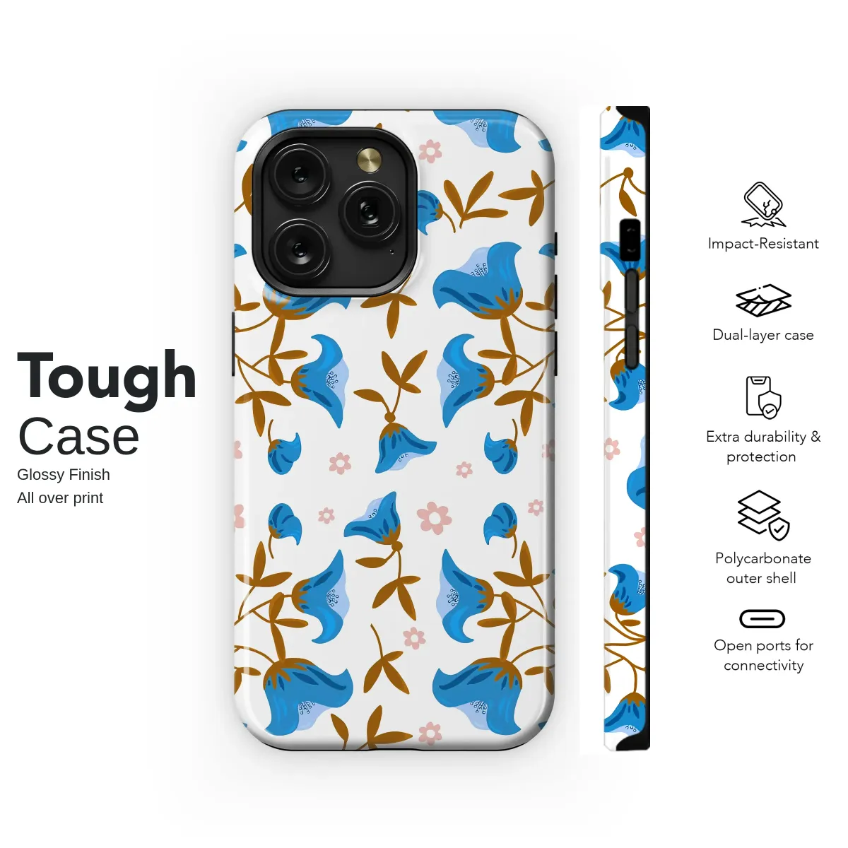 Blue Wildflower Botanical Pattern Art Phone Case Cover for iPhone 17 Pro Max 16 15 Plus 14 13 Mini SE Samsung S25 S24 Google Pixel 10 9 8912