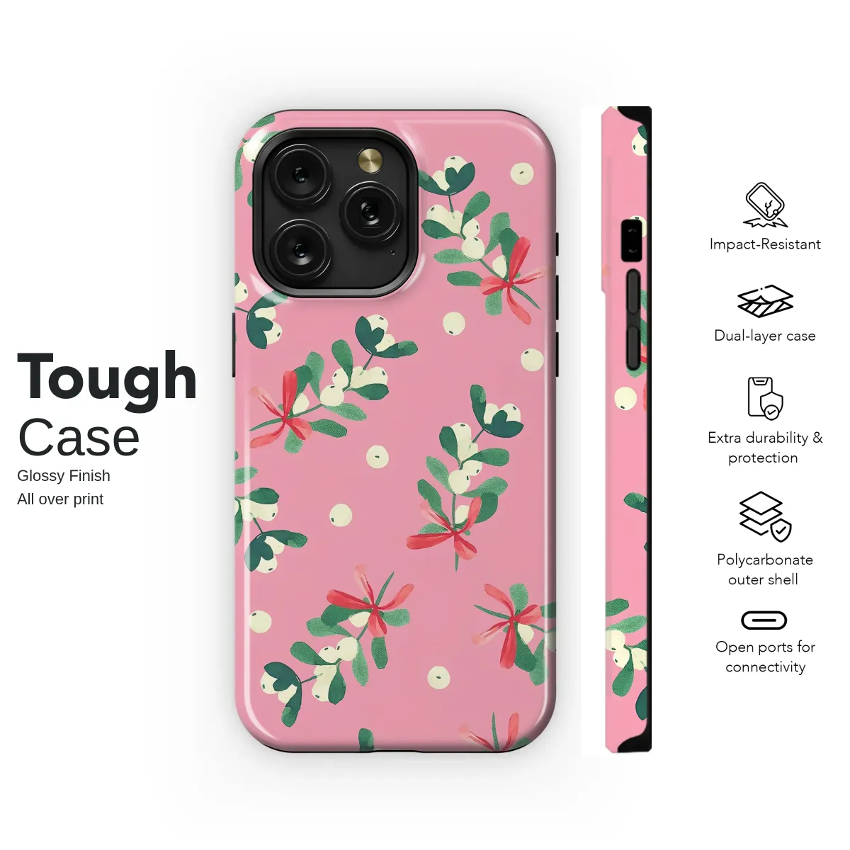 Blushing Christmas Mistletoe Kisses Phone Case iPhone Samsung Cover Pixel 8040