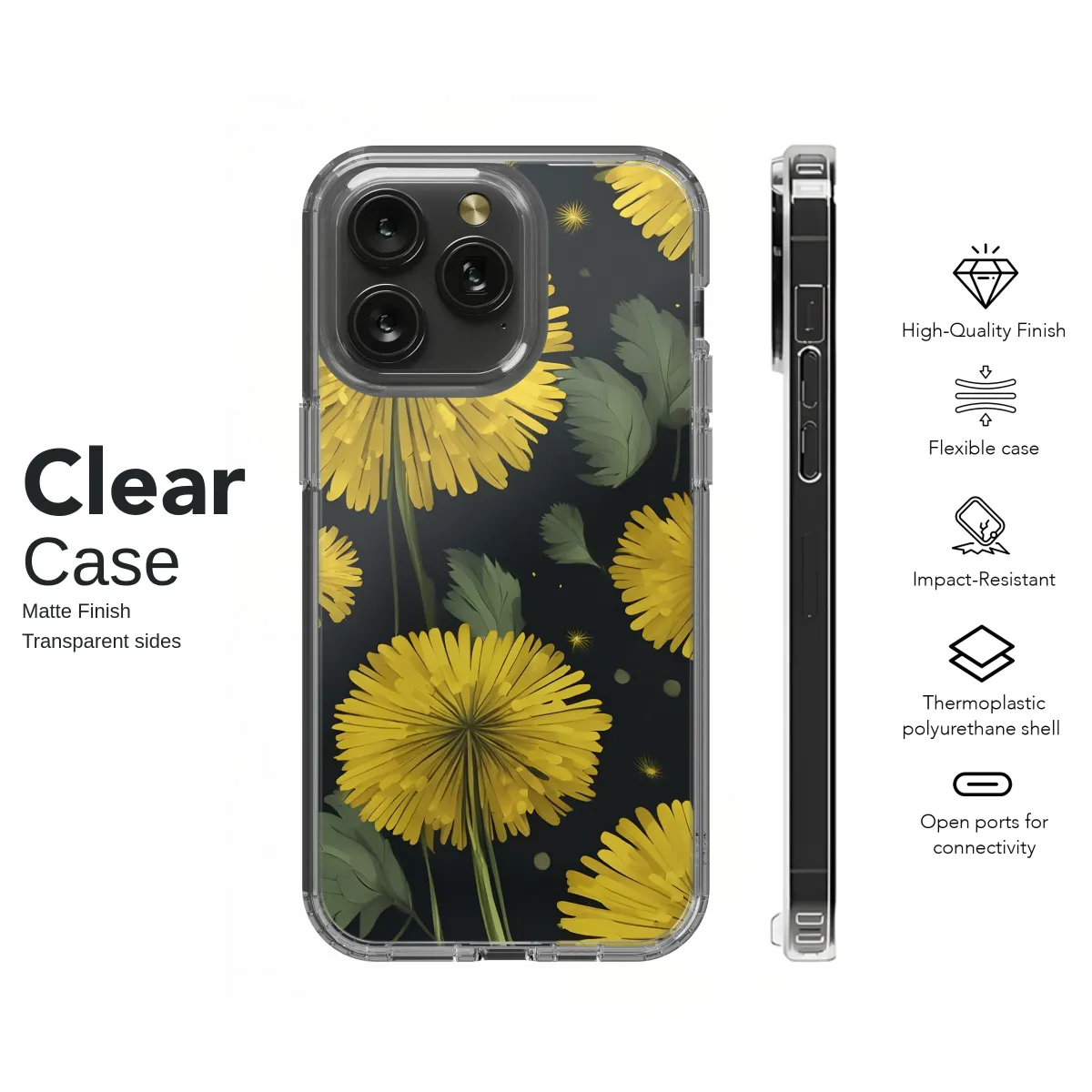 Botanical Yellow Dandelion Print Phone Case Cover for iPhone 17 Pro Max 16 15 Plus 14 13 Mini SE Samsung S25 S24 S23 Google Pixel 10 9 8324