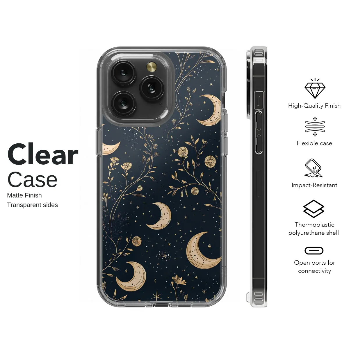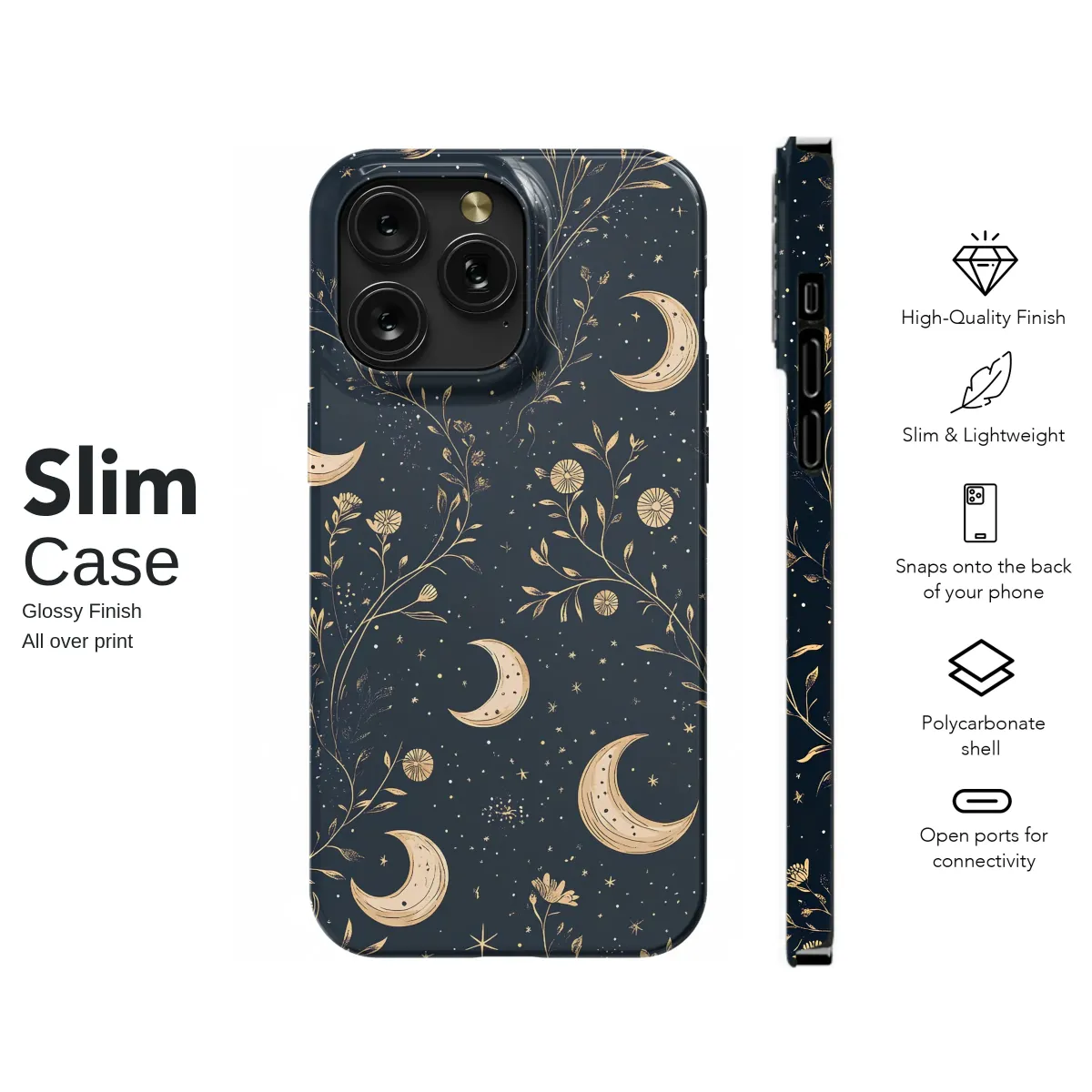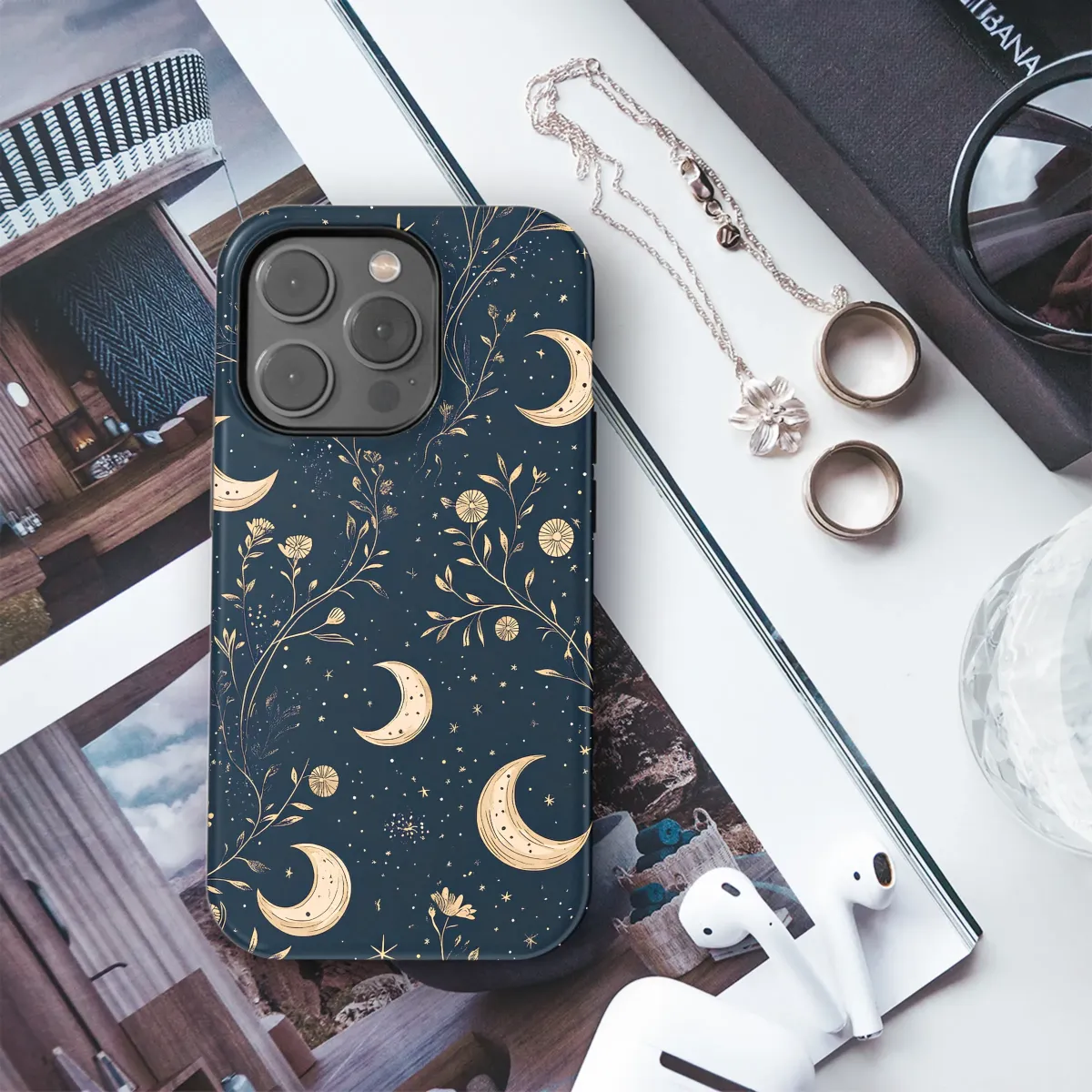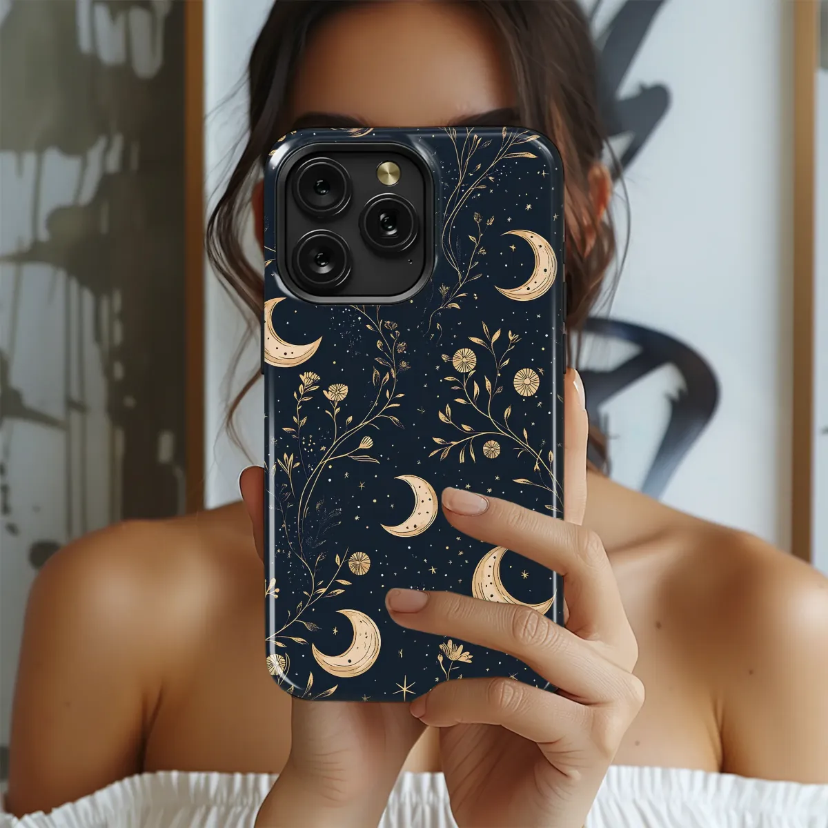 Celestial Floral Moon and Stars Illustration Phone Case Cover for iPhone 17 Pro Max 16 15 Plus 14 13 Mini Samsung S26 S25 Pixel 10 9 9647