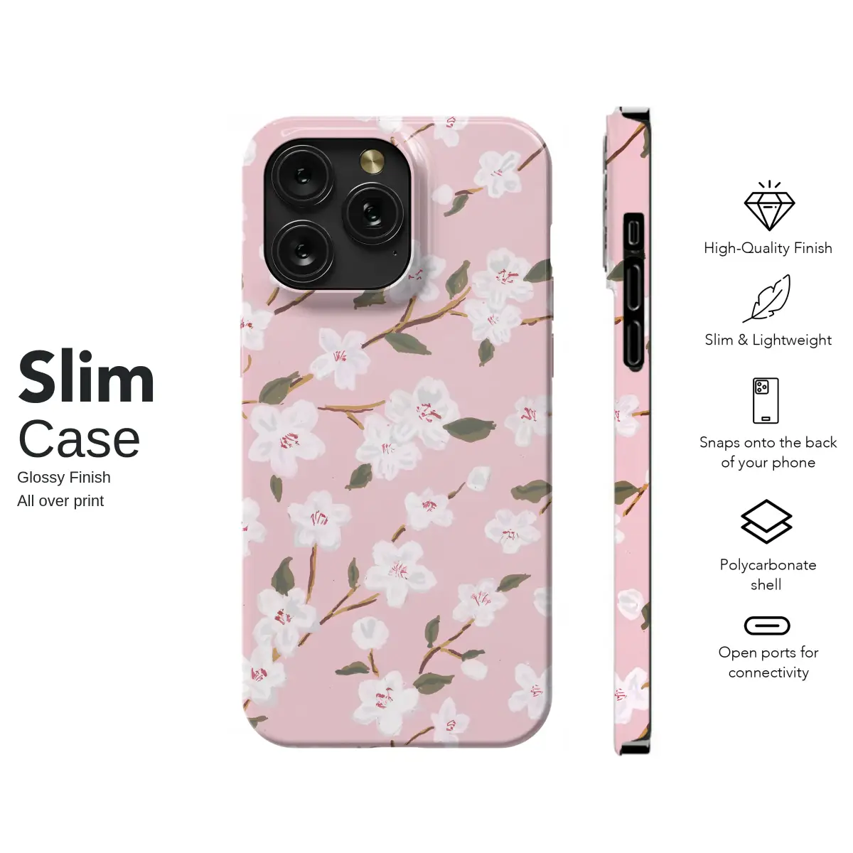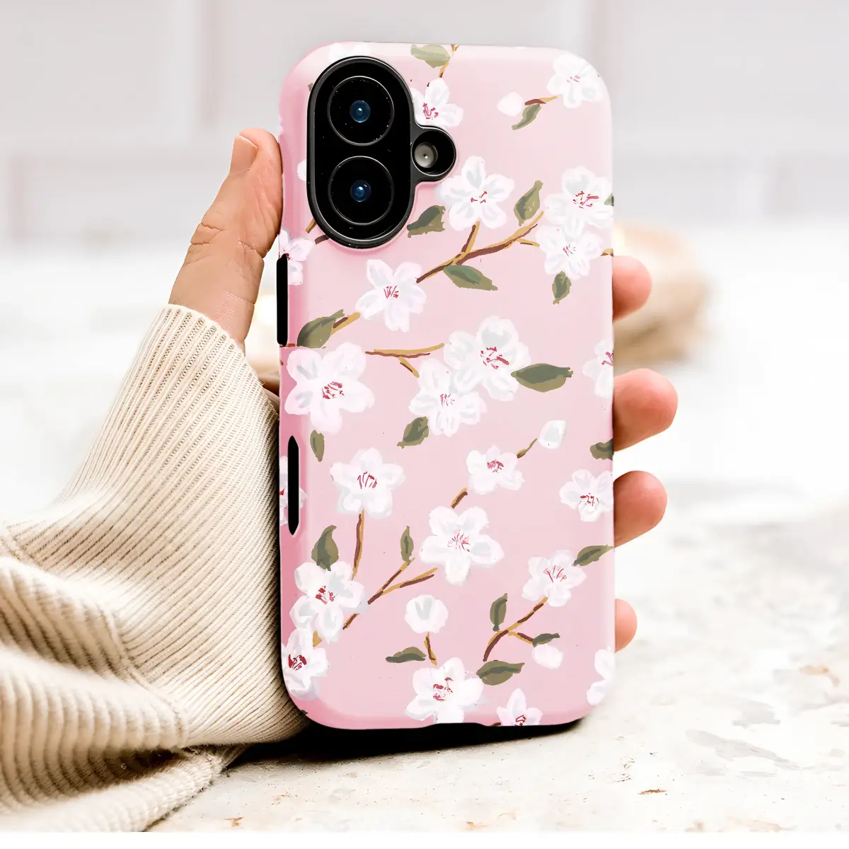 Cherry Blossom Painted Floral Pink Botanical Illustration Phone Case Cover for iPhone 17 Pro Max 16 15 13 Samsung S26 S25 Pixel 9899