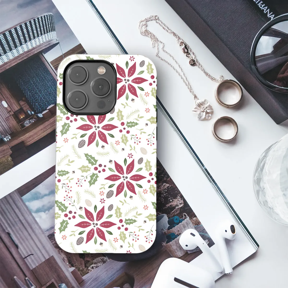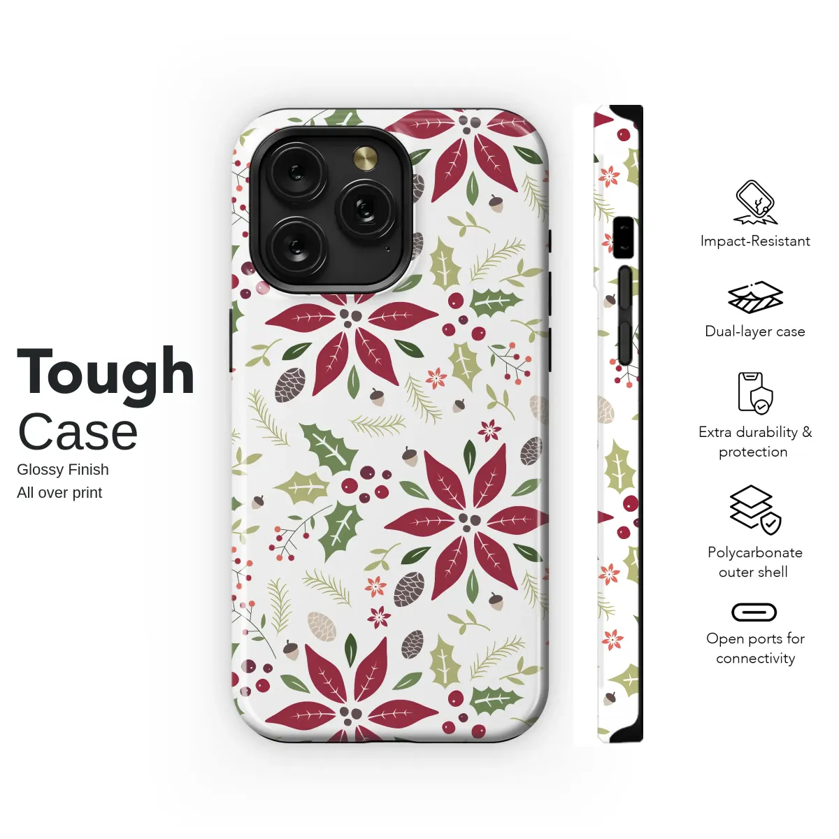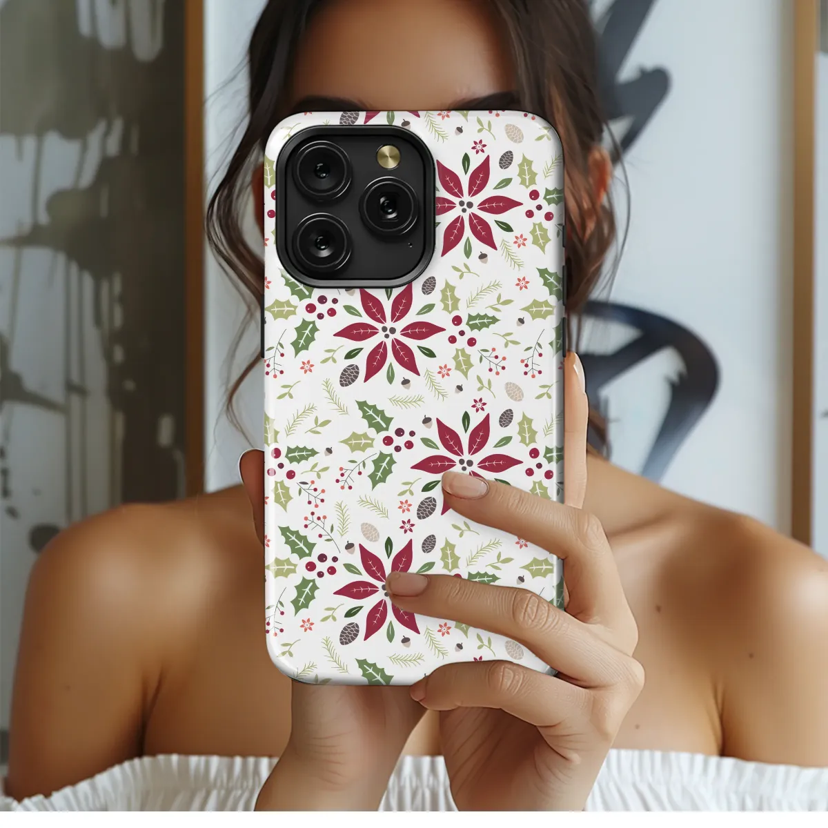 Christmas Poinsettia Holly Berry Festive Winter Pattern Phone Case Cover for iPhone 17 Pro Max 16 15 13 Samsung S25 S24 Pixel 8644 - Image 1