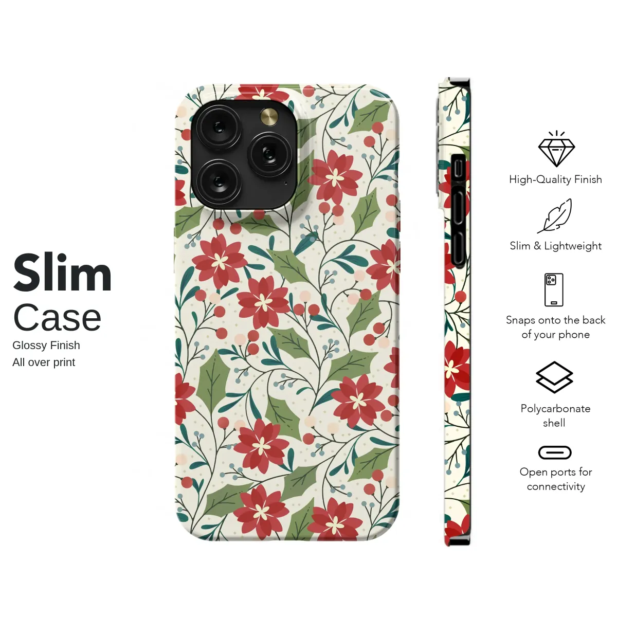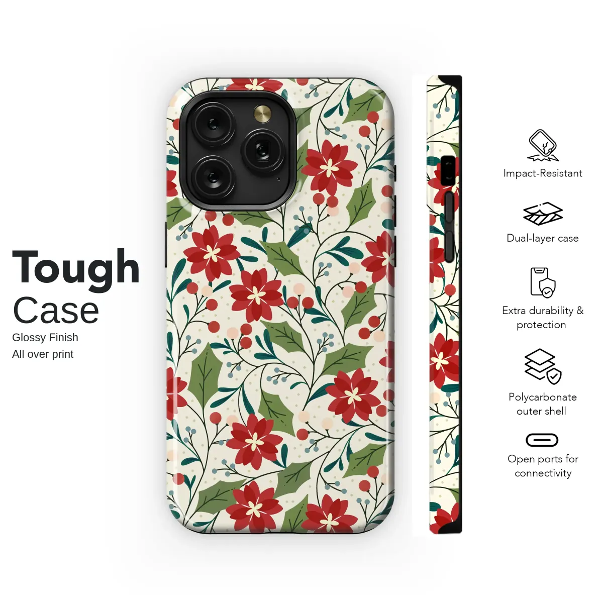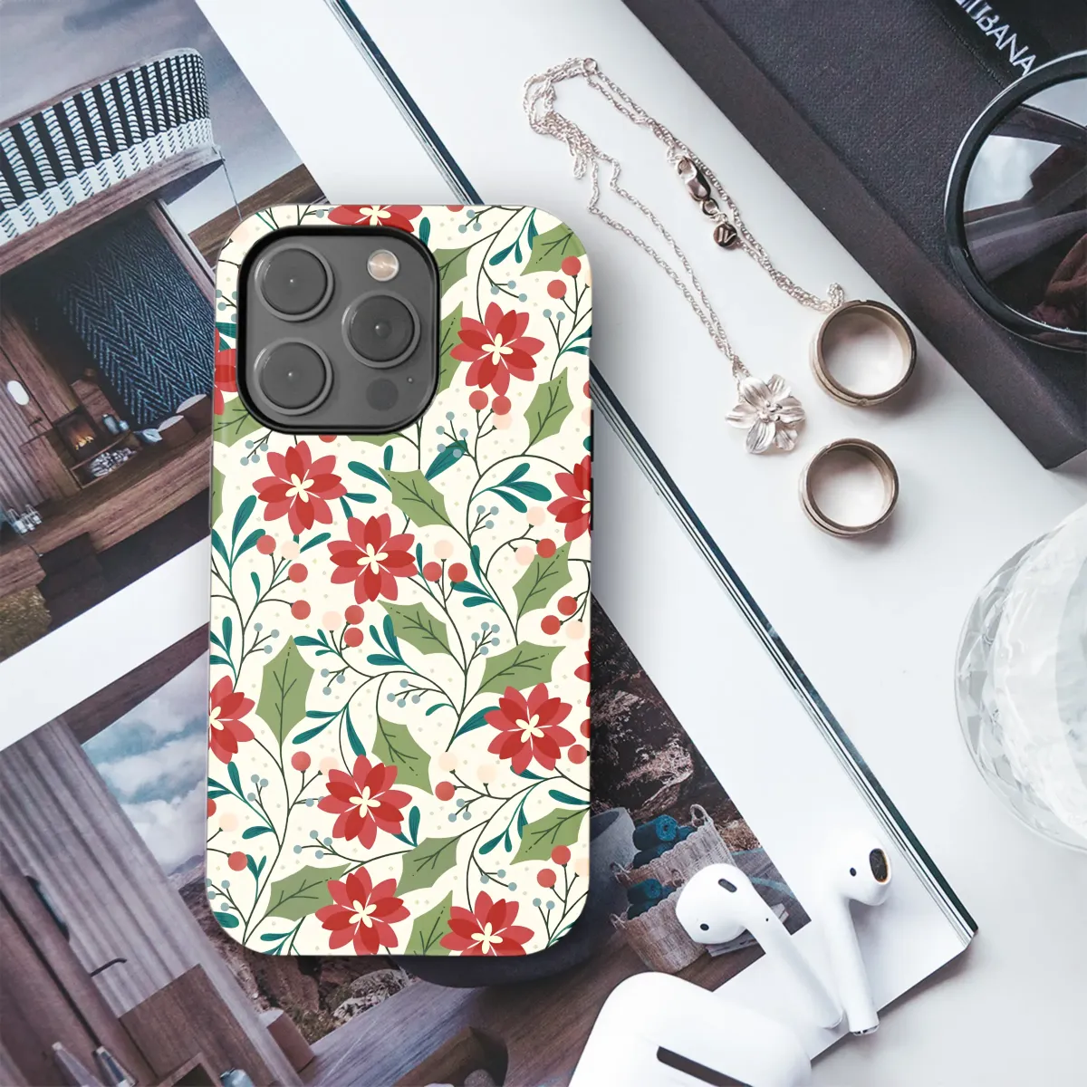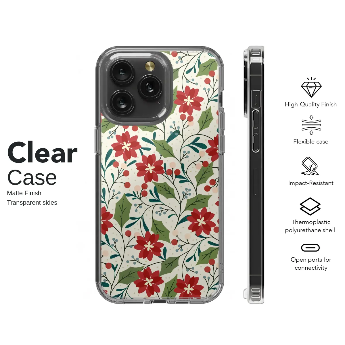 Christmas Poinsettia Holly Berry Pattern Phone Case Cover for iPhone 17 Pro Max 16 15 Plus 14 13 Mini Samsung S25 S24 Google Pixel 10 9 9180