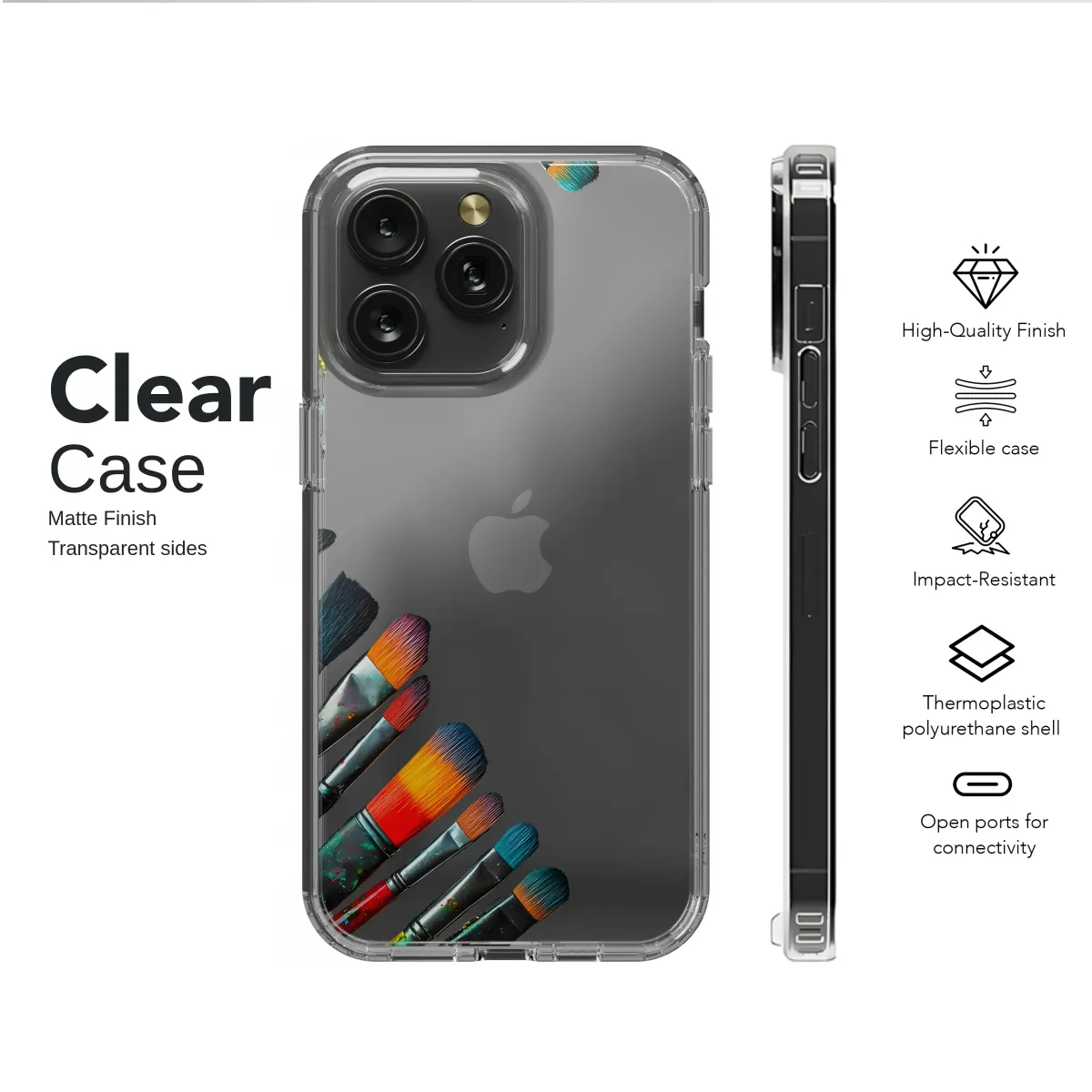 Clear Clear Artistic Paintbrush Colorful Abstract Design Phone Case Cover for iPhone 17 Pro Max 16 15 13 Samsung S25 S24 Pixel 8281