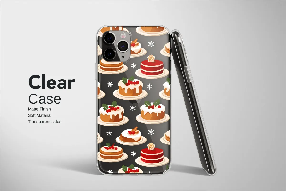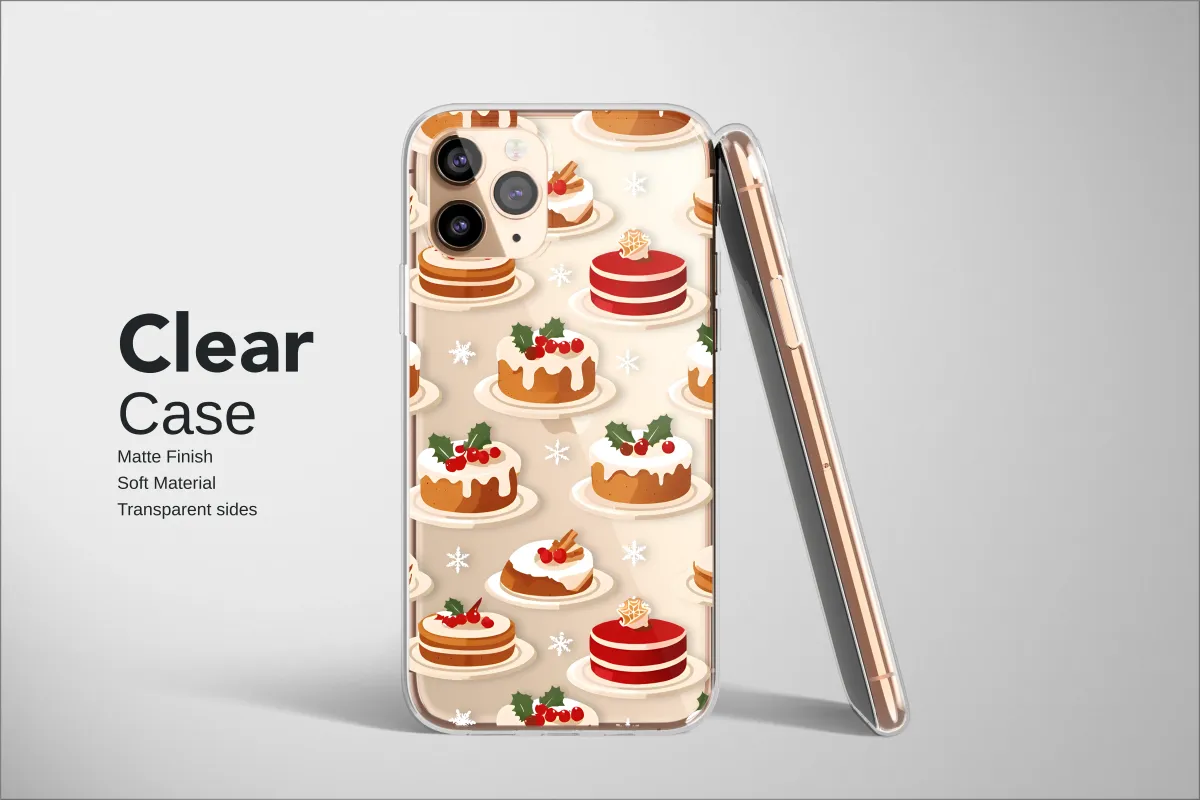 Clear Clear Christmas Cake Pattern Festive Holiday Dessert Art Phone Case Cover for iPhone 17 Pro Max 16 15 13 Samsung S25 S24 Pixel 9126