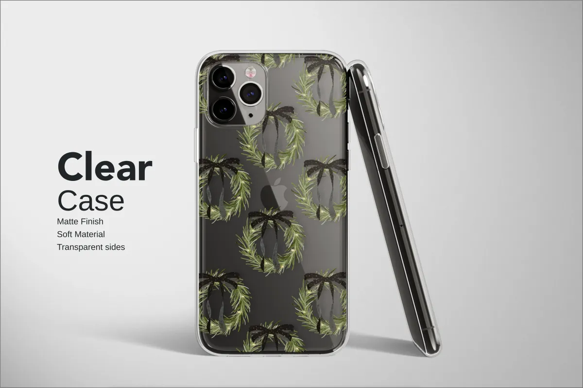 Clear Clear Christmas Wreath Pattern with Black Polka Dot Bow Phone Case Cover for iPhone 17 Pro Max 16 15 13 Samsung S25 S24 Pixel 8634