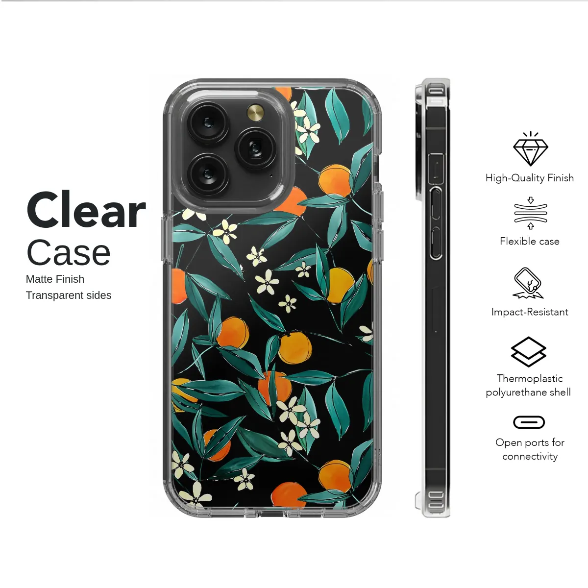 Clear Clear Citrus Grove Glitch Art Botanical Illustration Phone Case Cover for iPhone 17 Pro Max 16 15 13 Samsung S25 S24 Pixel 8761