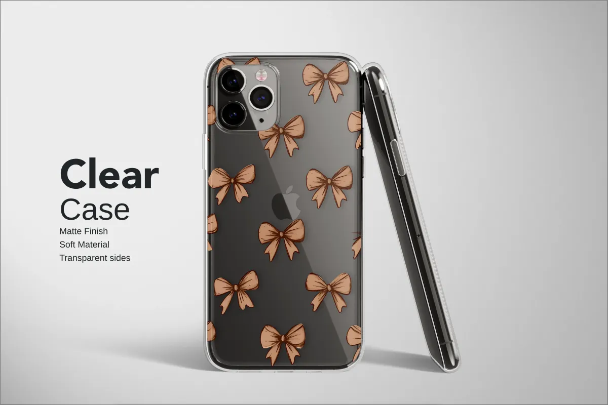 Clear Clear Coquette Brown Bow Pattern Sketched Ribbon Art Phone Case Cover for iPhone 17 Pro Max 16 15 13 Samsung S25 S24 Pixel 9097
