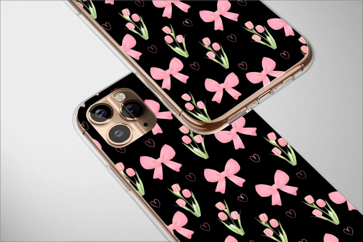 Clear Clear Coquette Tulip Bow Glitch Heart Pattern Phone Case Cover for iPhone 17 Pro Max 16 15 Plus 14 13 Mini Samsung S25 S24 Pixel 10 9 8709 - Image 1