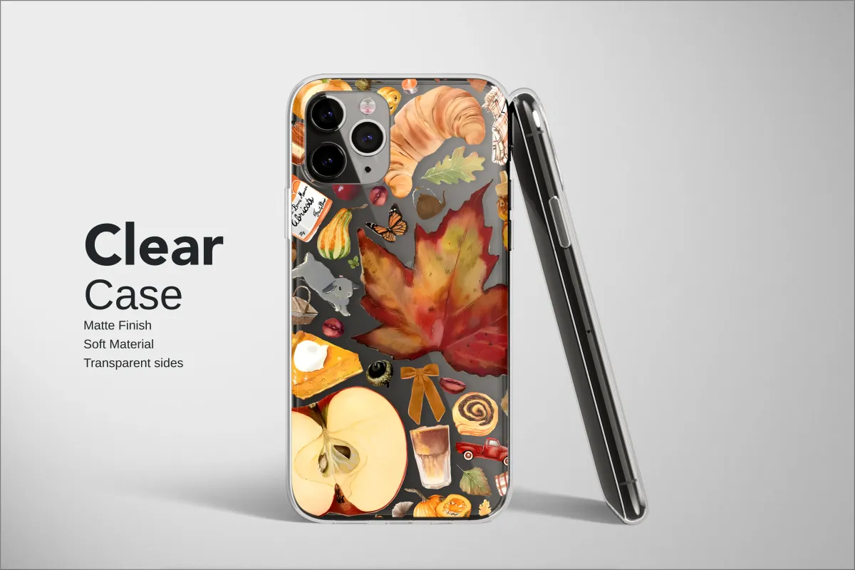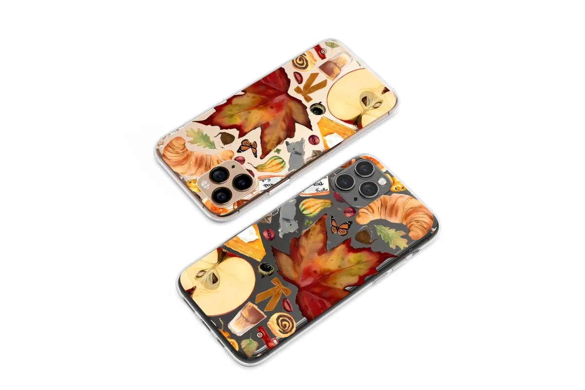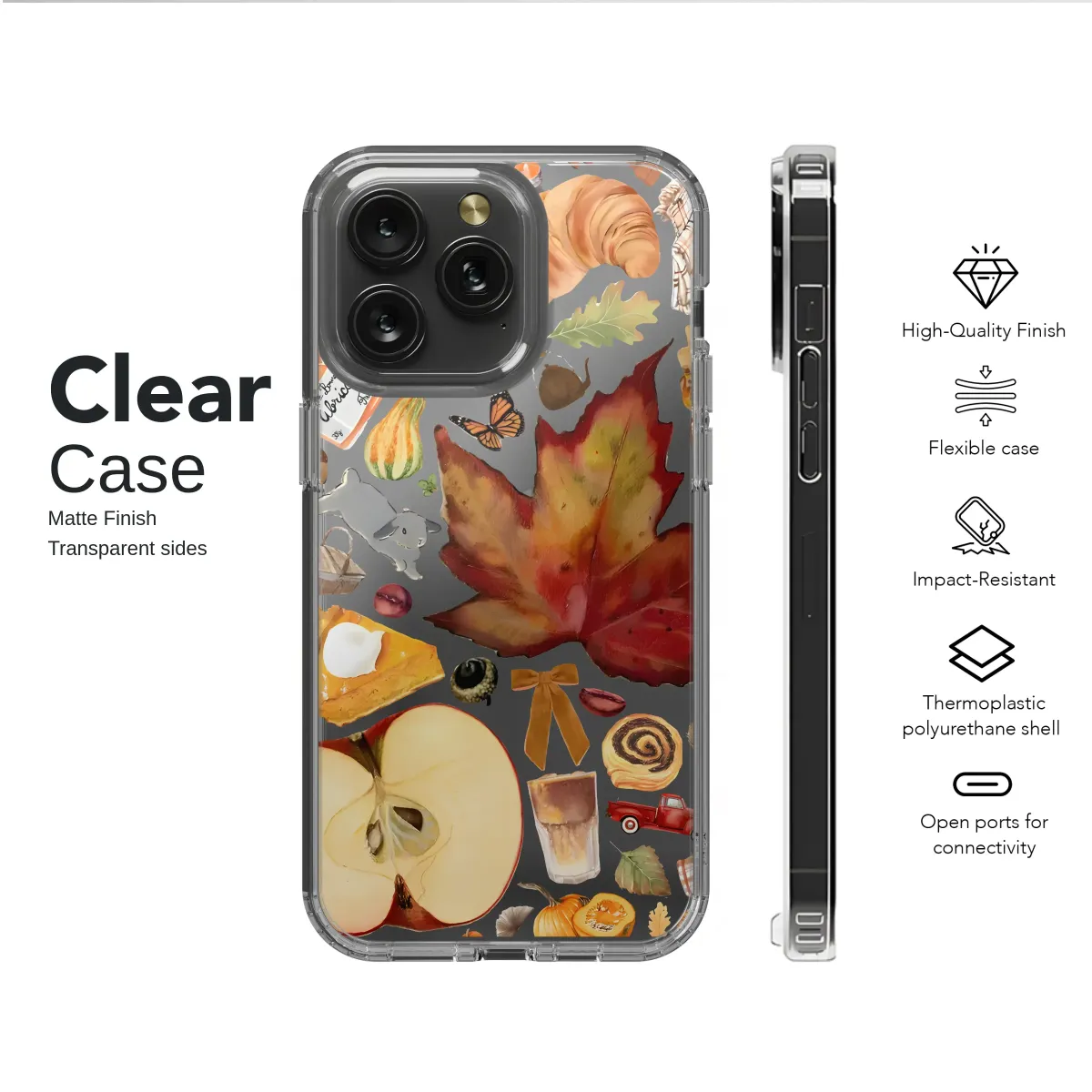 Clear Clear Cozy Autumn Harvest Watercolor Collage Phone Case Cover for iPhone 17 Pro Max 16 15 Plus 14 13 Mini Samsung S25 S24 Pixel 10 9 9316