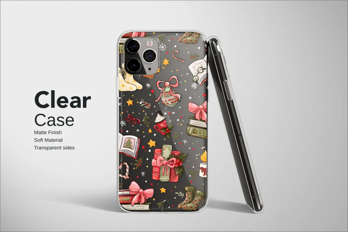 Clear Clear Cozy Christmas Books Festive Holiday Collage Phone Case Cover for iPhone 17 Pro Max 16 15 13 Samsung S25 S24 Pixel 9115