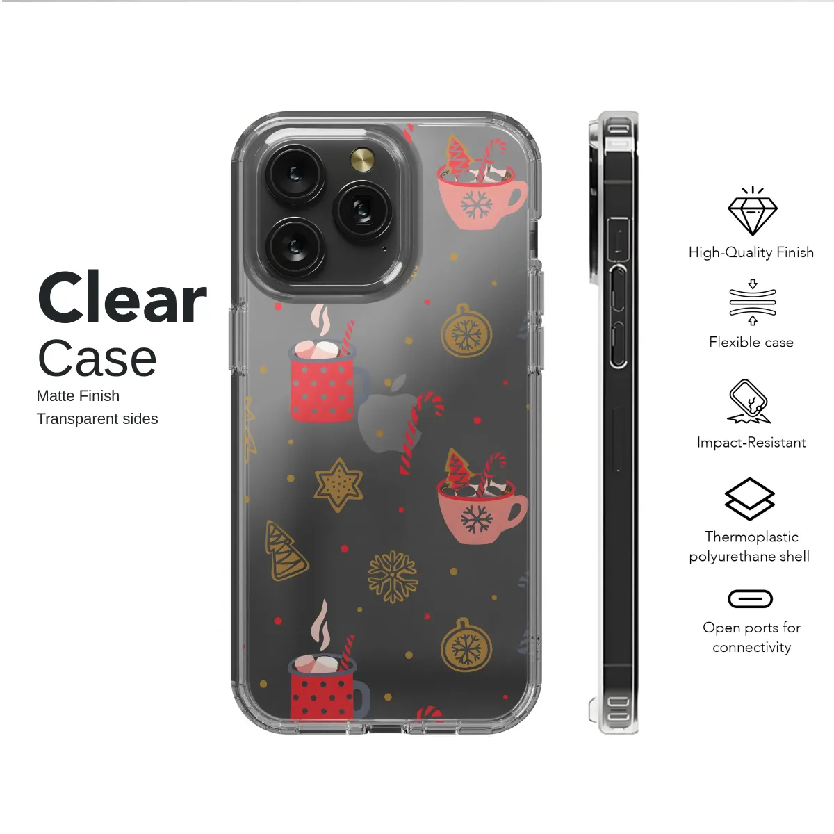 Clear Clear Cozy Christmas Hot Cocoa Gingerbread Print Phone Case Cover for iPhone 17 Pro Max 16 15 13 Samsung S25 S24 Pixel 8365 - Image 1