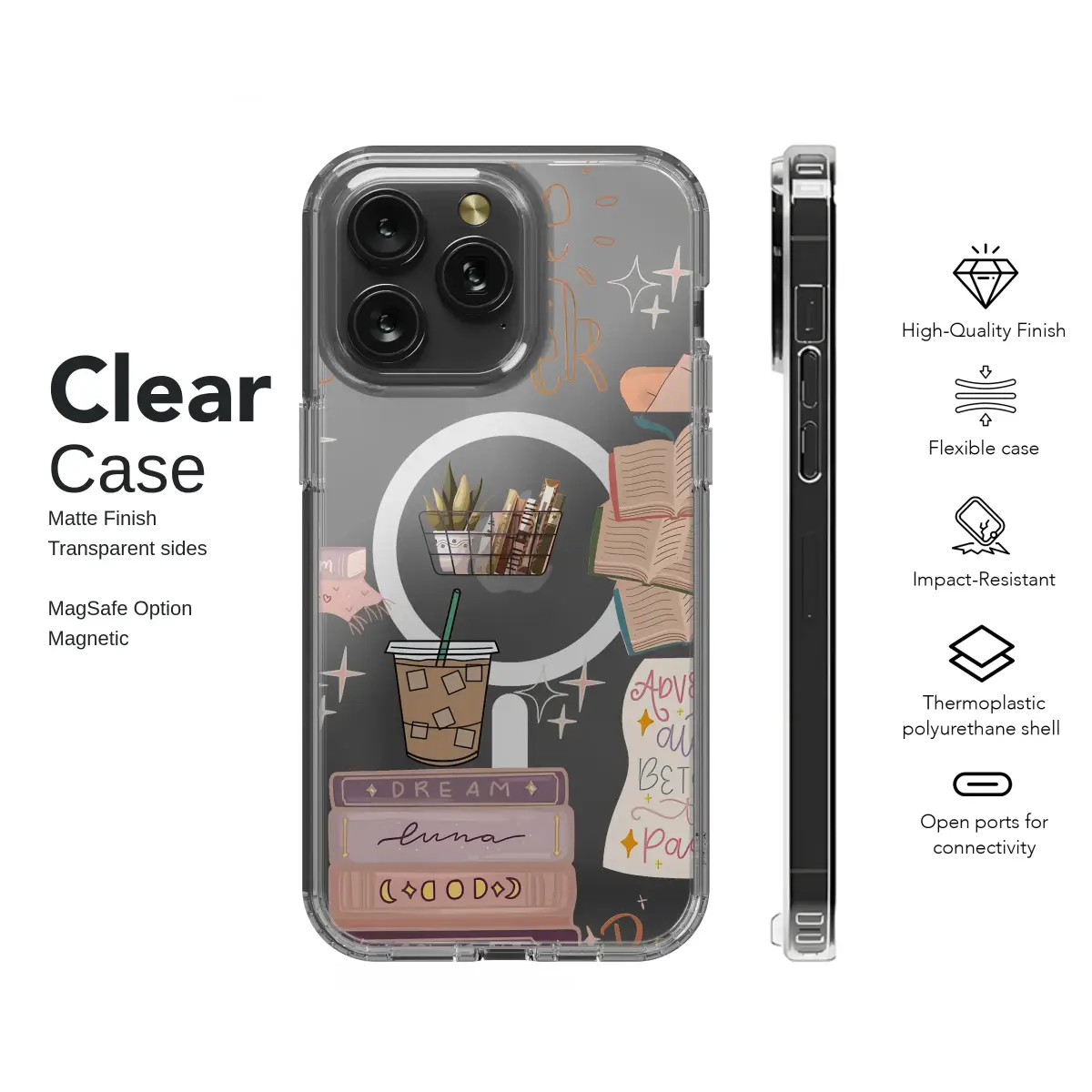 Clear Clear Cozy Reader Collage Bookworm Aesthetic Bookish Illustration Phone Case Cover for iPhone 17 Pro Max 16 15 13 Samsung S26 S25 Pixel 9774