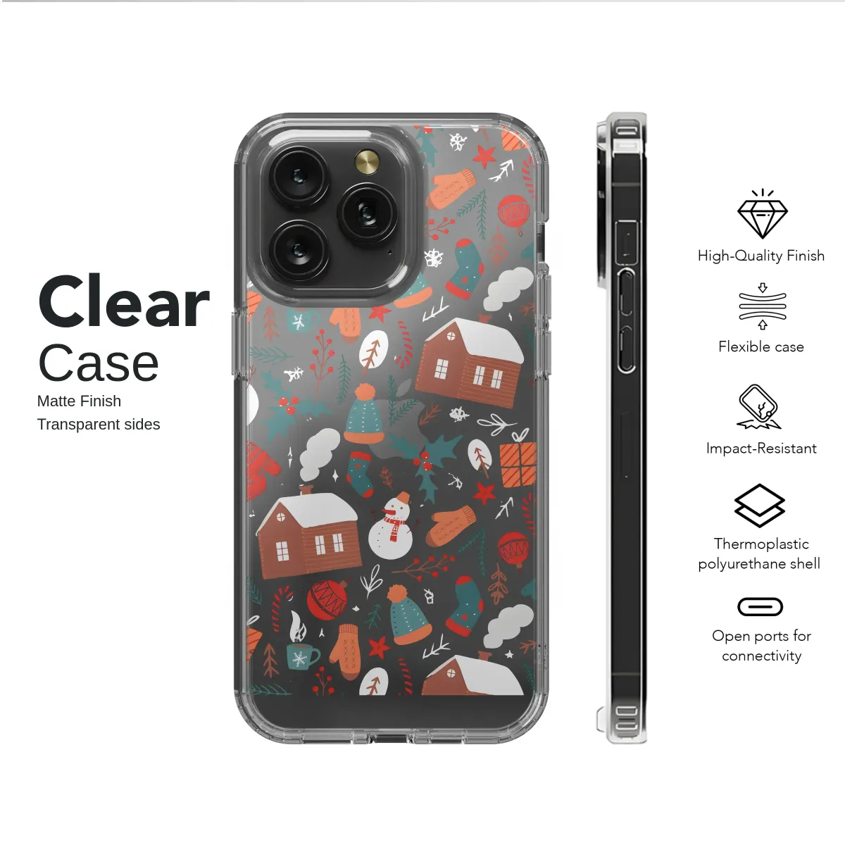 Clear Clear Cozy Winter Cabin Christmas Pattern Illustration Phone Case Cover for iPhone 17 Pro Max 16 15 13 Samsung S25 S24 Pixel 8715 - Image 1