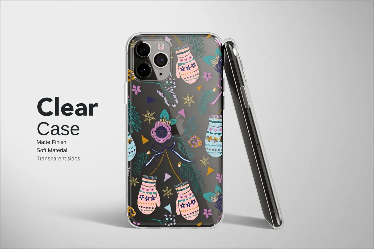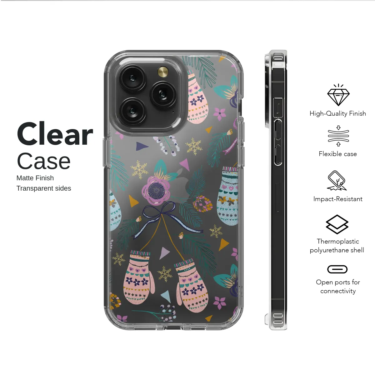 Clear Clear Cozy Winter Mitten Floral Collage Phone Case Cover for iPhone 17 Pro Max 16 15 Plus 14 13 Mini Samsung S25 S24 Google Pixel 10 9 8784
