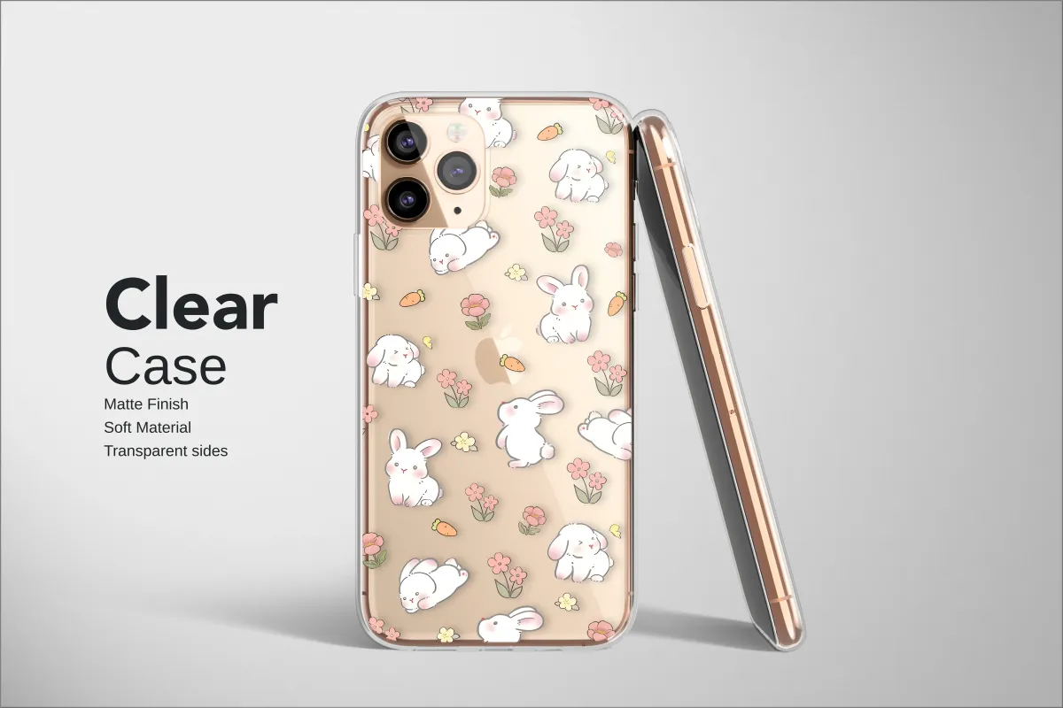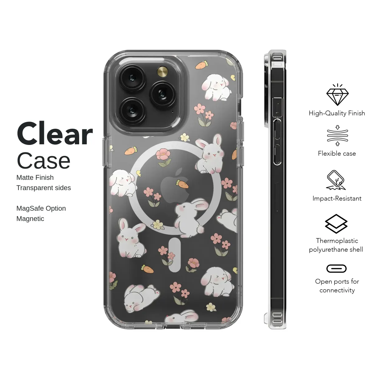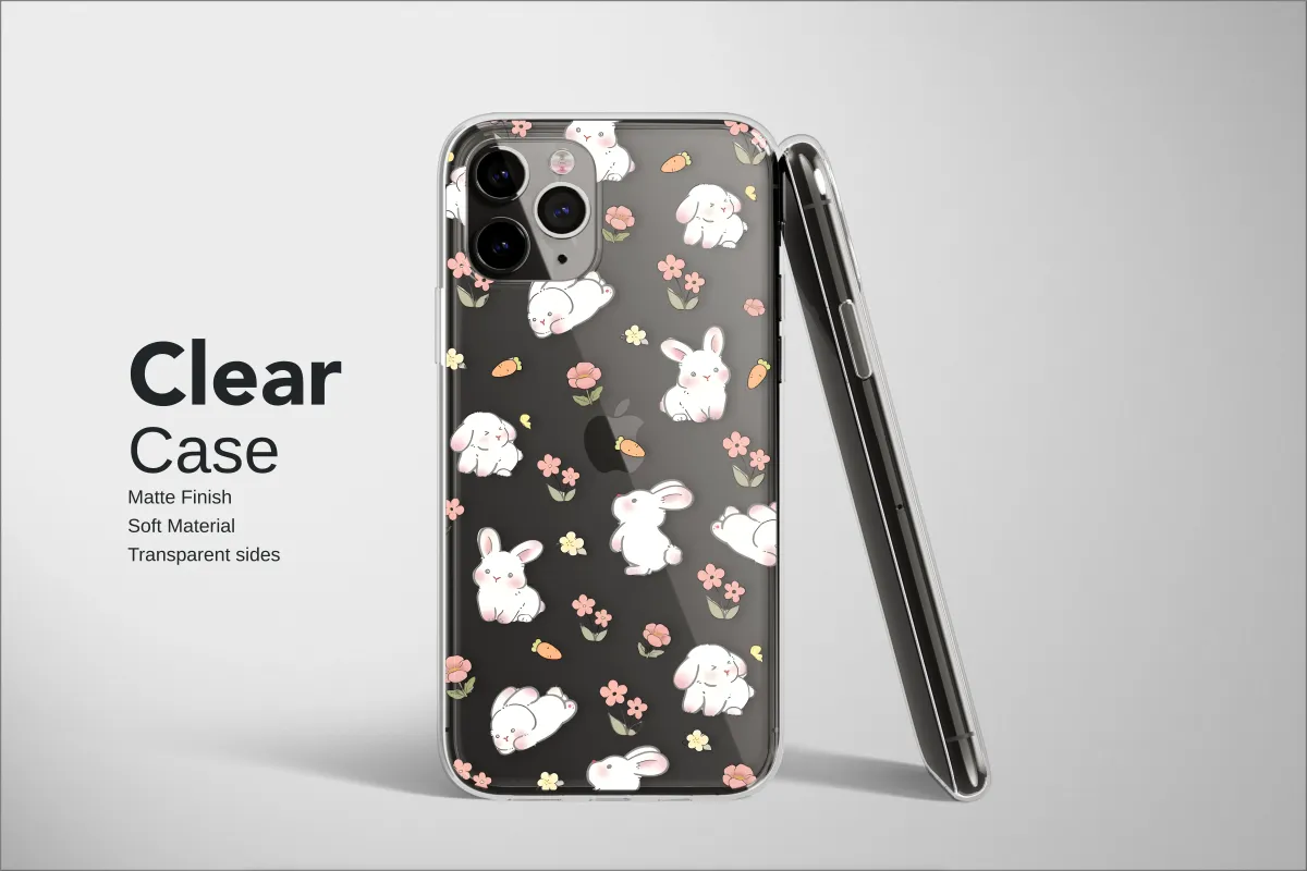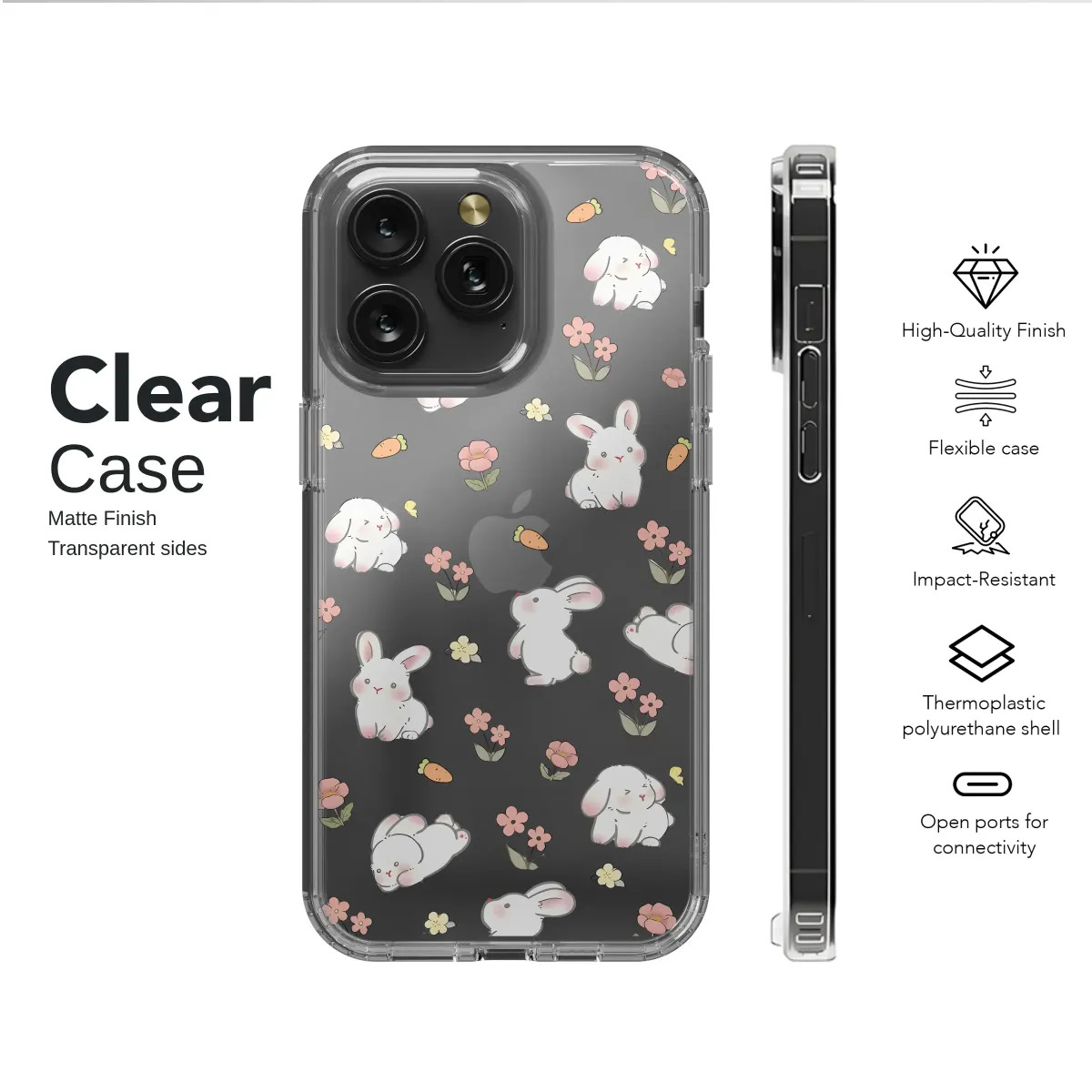 Clear Clear Cute Bunny Rabbit Floral Garden Illustration Phone Case Cover for iPhone 17 Pro Max 16 15 13 Samsung S26 S25 Pixel 9468