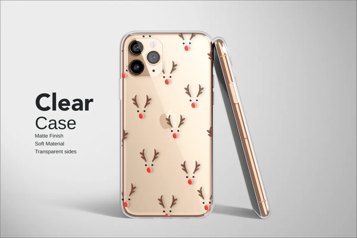Clear Clear Cute Red Nose Reindeer Holiday Pattern Design Phone Case Cover for iPhone 17 Pro Max 16 15 13 Samsung S25 S24 Pixel 8496