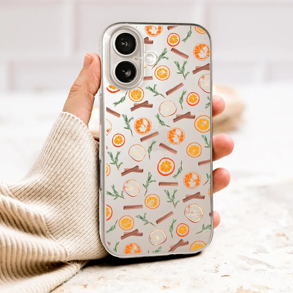 Clear Clear Dried Orange Cinnamon Botanical Illustration Phone Case Cover for iPhone 17 Pro Max 16 15 13 Samsung S26 S25 Pixel 10011
