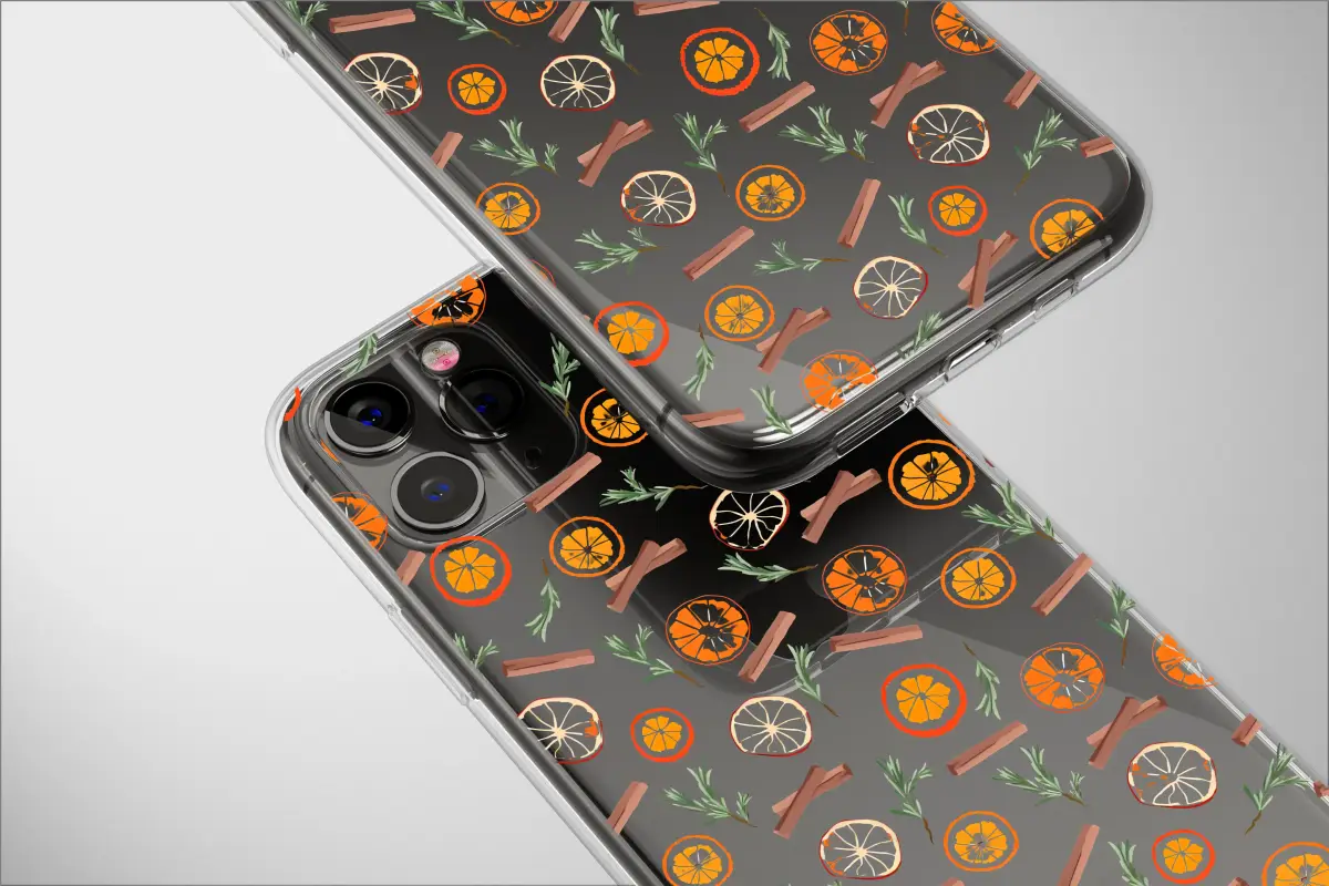 Wrap your tech in the warmth of the season with this delightful winter spice pattern. The design features beautifully illustrated dried orange slices, aromatic cinnamon sticks, and fresh rosemary sprigs. It's a cozy, natural aesthetic perfect for autumn and holiday vibes, bringing a touch of cottagecore charm to your everyday.