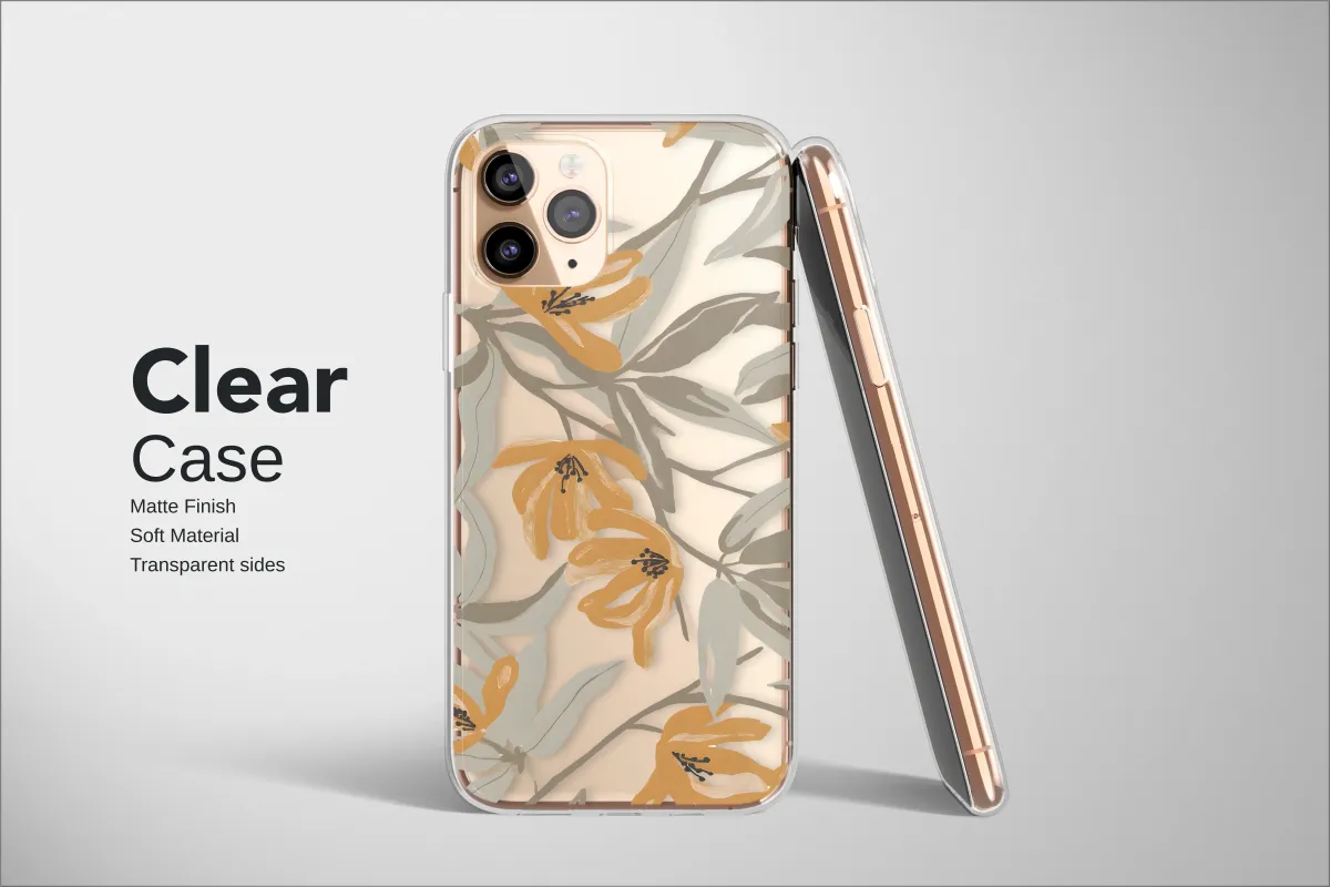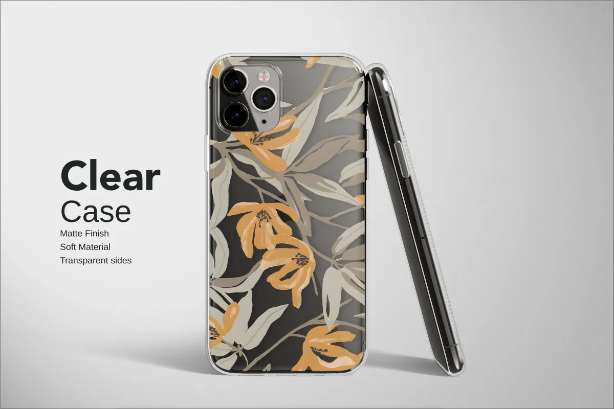 Clear Clear Earthy Orange Botanical Floral Modern Art Print Phone Case Cover for iPhone 17 Pro Max 16 15 13 Samsung S25 S24 Pixel 8818