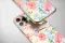Adorn your accessory with this delicate botanical illustration featuring graceful orchids, a charming bird, and a gentle butterfly. This elegant watercolor design showcases a serene scene where a sweet long-tailed tit perches among blooming pink and light blue orchids. The artistic, Chinoiserie-inspired style brings a touch of nature's tranquility and sophistication to your everyday life.