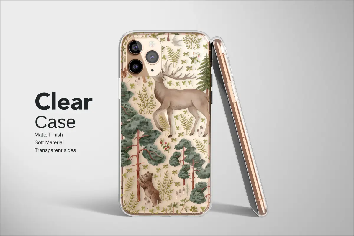 Clear Clear Enchanted Forest Woodland Animal Illustration Phone Case Cover for iPhone 17 Pro Max 16 15 13 Samsung S26 S25 Pixel 10025
