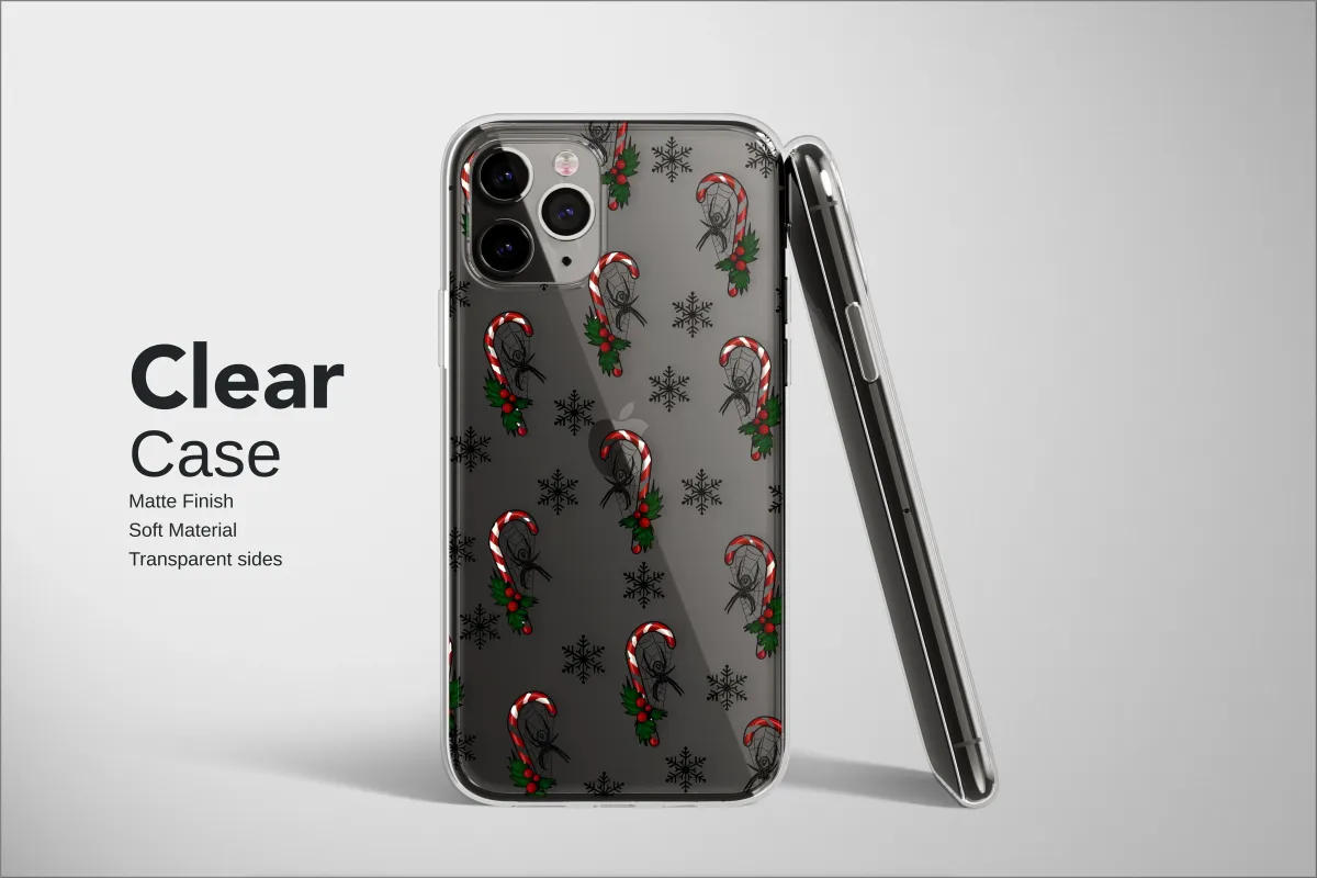 Clear Clear Festive Candy Cane Holly Berry Snowflake Pattern Phone Case Cover for iPhone 17 Pro Max 16 15 13 Samsung S25 S24 Pixel 8477