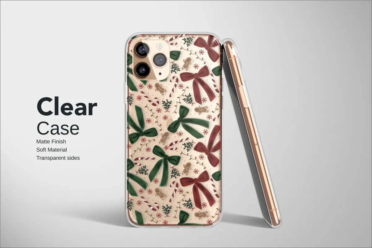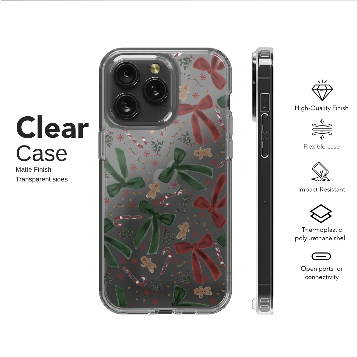 Clear Clear Festive Christmas Gingerbread Bow Pattern Phone Case Cover for iPhone 17 Pro Max 16 15 Plus 14 13 Mini Samsung S25 S24 Pixel 10 9 8578 - Image 1