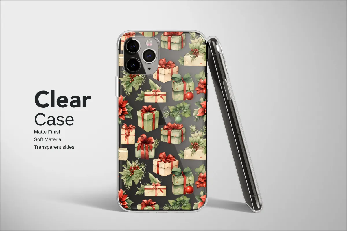 Clear Clear Festive Christmas Presents Watercolor Design Phone Case Cover for iPhone 17 Pro Max 16 15 13 Samsung S25 S24 Pixel 8456 - Image 1