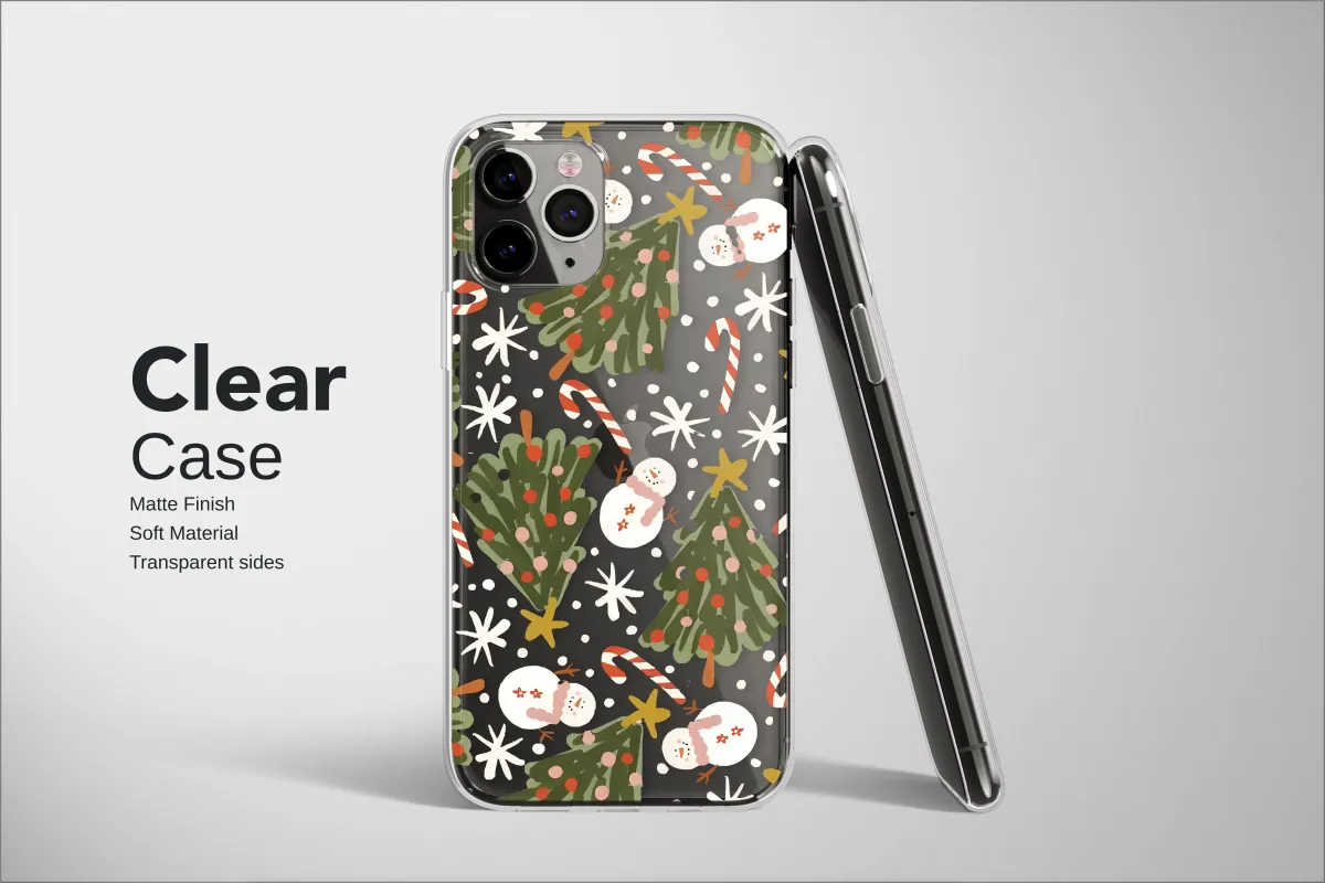 Clear Clear Festive Christmas Snowman Tree Illustration Phone Case Cover for iPhone 17 Pro Max 16 15 13 Samsung S25 S24 Pixel 8204