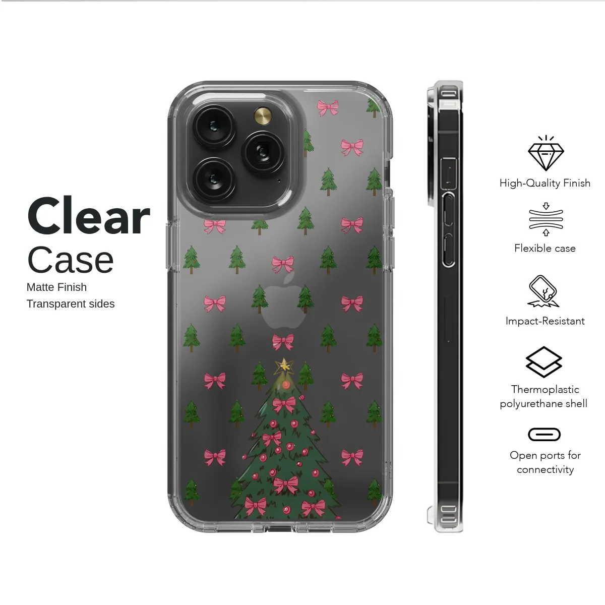 Clear Clear Festive Christmas Tree Pink Bows Glitch Art Phone Case Cover for iPhone 17 Pro Max 16 15 13 Samsung S25 S24 Pixel 8889 - Image 1