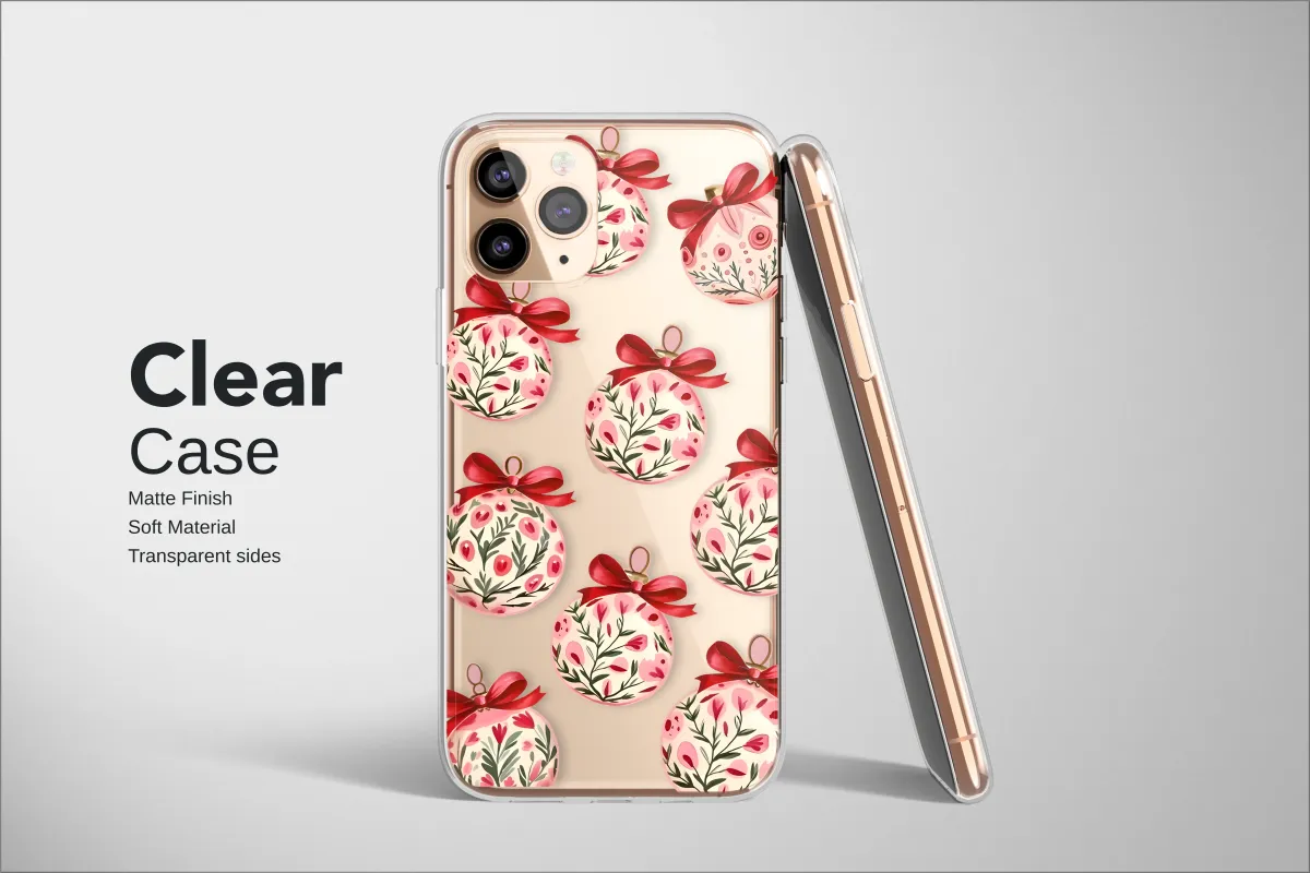 Home Phone Cases Clear Clear Festive Floral Christmas Ornament with Red Bow Phone Case Cover for iPhone 17 Pro Max 16 15 13 Samsung S25 S24 Pixel 9144
