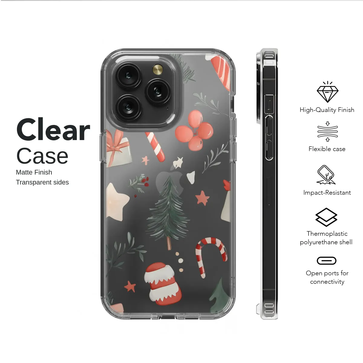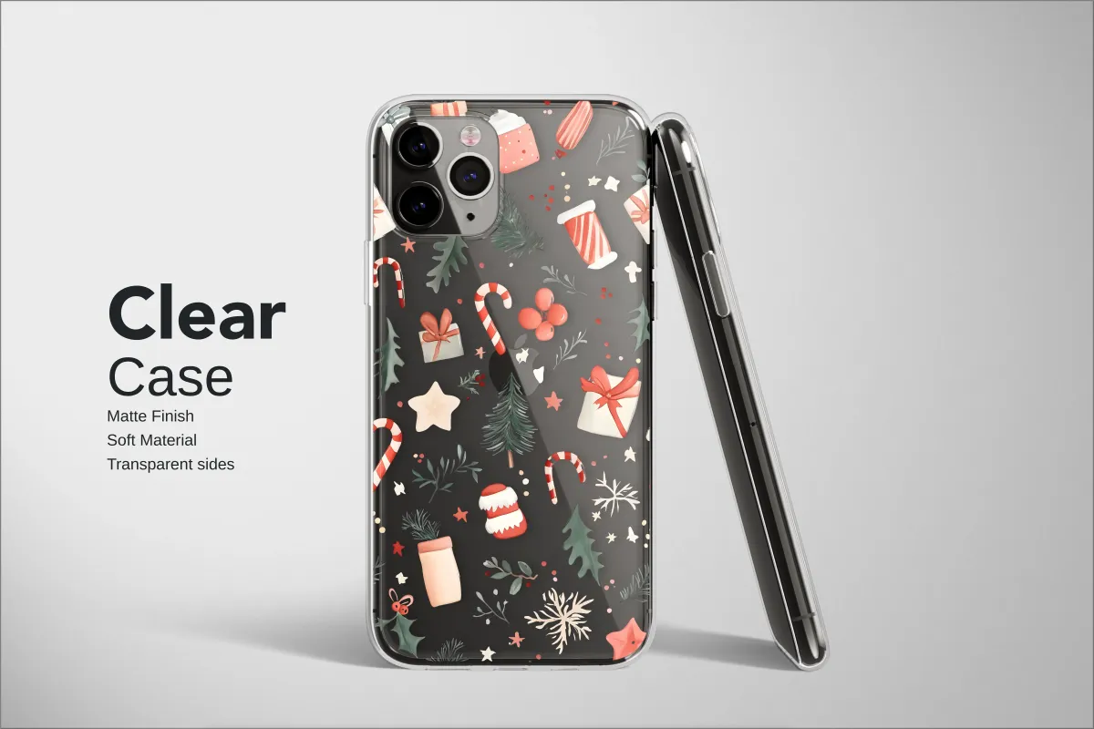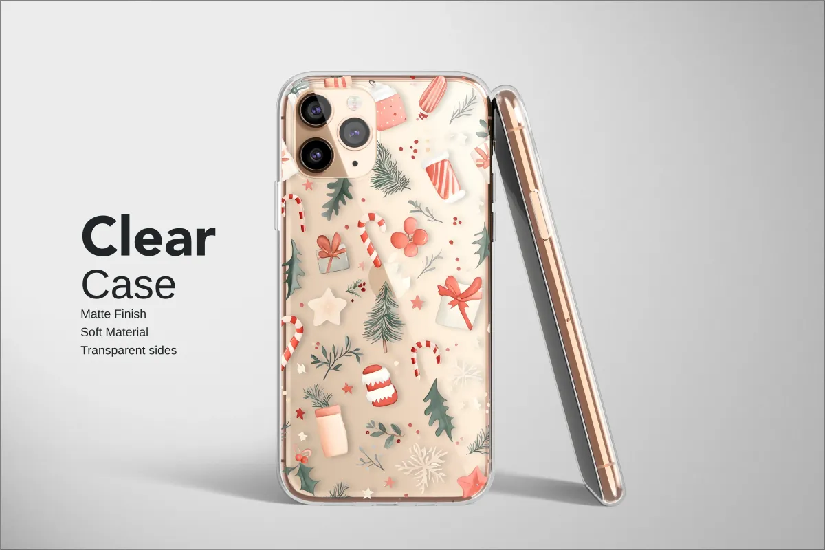 Clear Clear Festive Holiday Glitch Art Christmas Illustration Phone Case Cover for iPhone 17 Pro Max 16 15 13 Samsung S25 S24 Pixel 8214