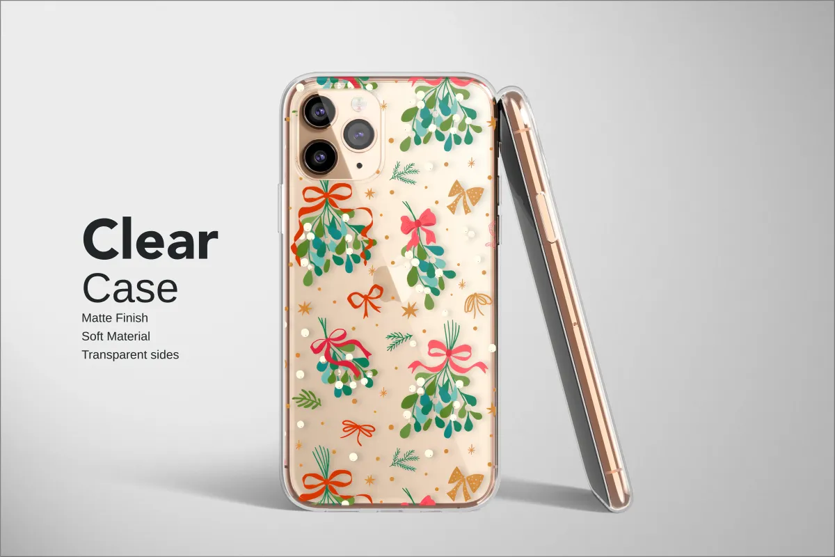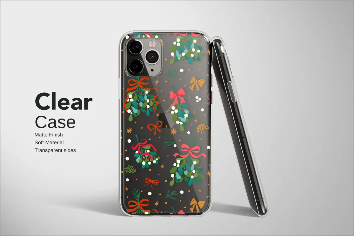 Clear Clear Festive Mistletoe Holiday Botanical Pattern Phone Case Cover for iPhone 17 Pro Max 16 15 13 Samsung S25 S24 Pixel 8624