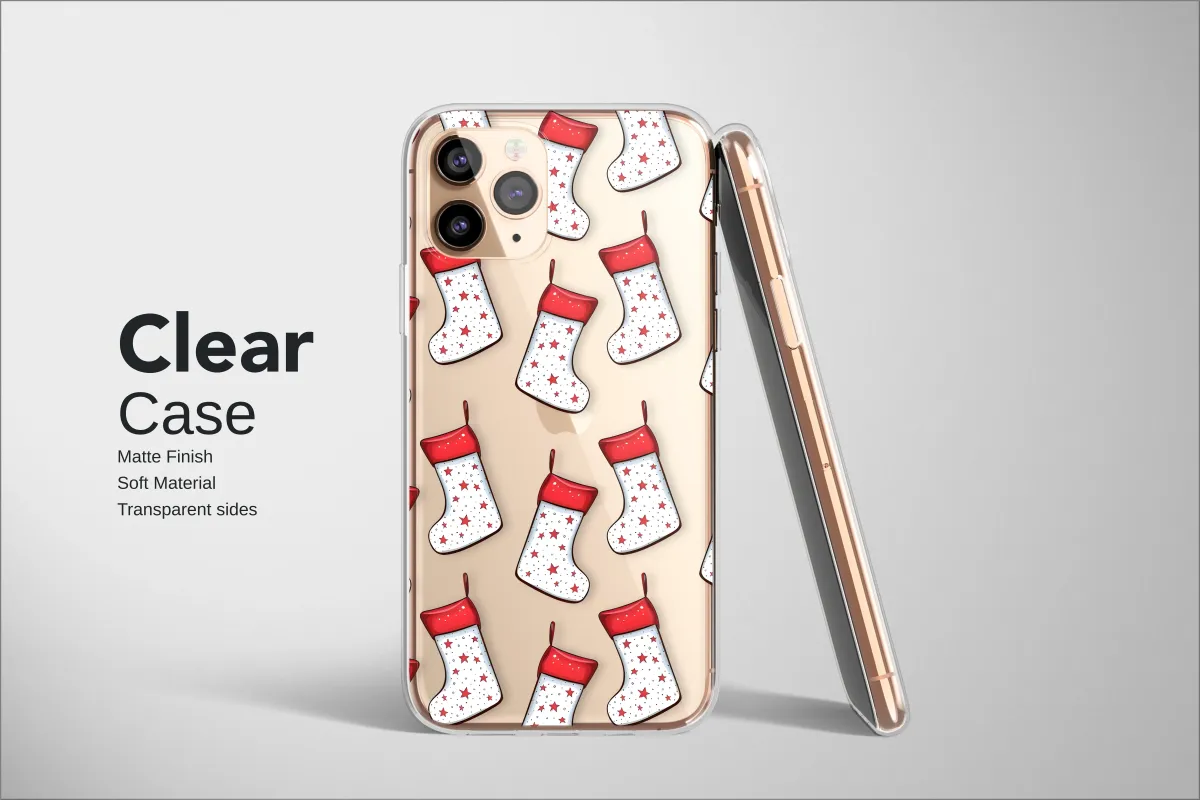 Clear Clear Festive Xmas Stocking Red Star Pattern Art Phone Case Cover for iPhone 17 Pro Max 16 15 13 Samsung S25 S24 Pixel 8580 - Image 1