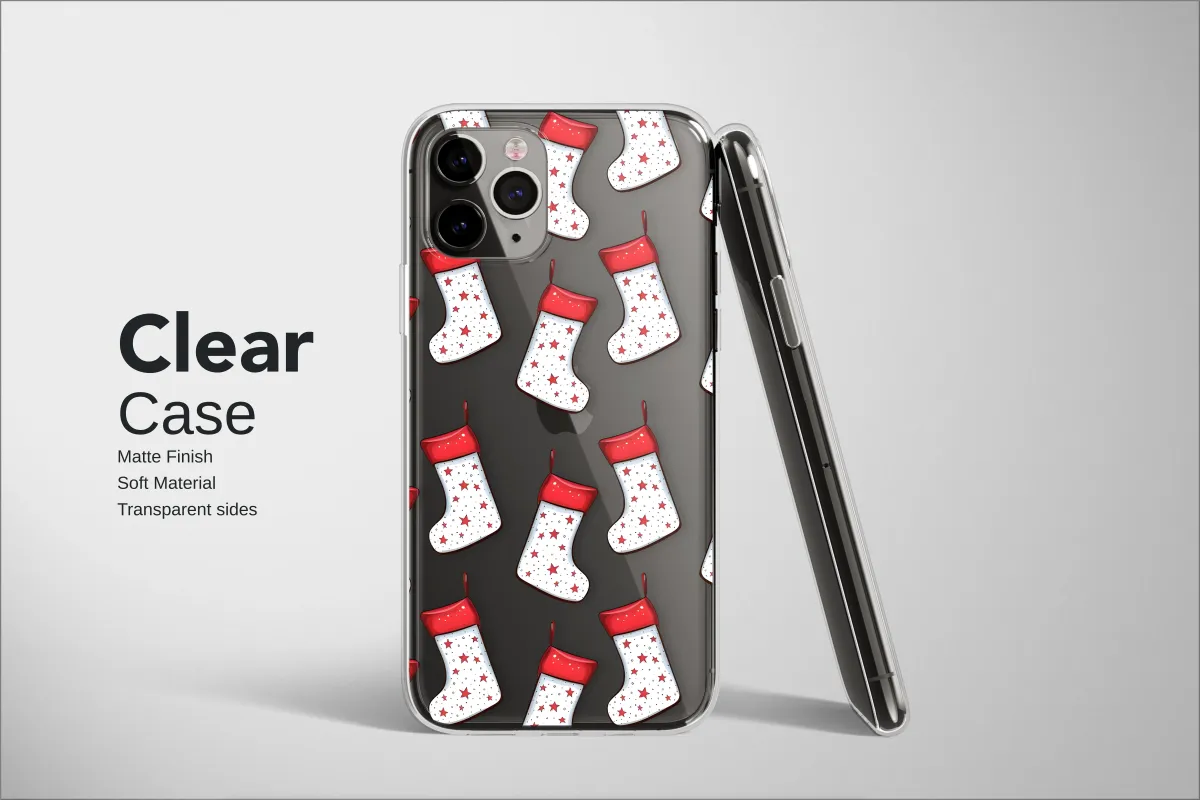 Clear Clear Festive Xmas Stocking Red Star Pattern Art Phone Case Cover for iPhone 17 Pro Max 16 15 13 Samsung S25 S24 Pixel 8580