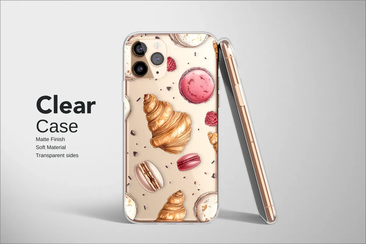 Clear Clear French Pastry Macaron Croissant Illustration Phone Case Cover for iPhone 17 Pro Max 16 15 13 Samsung S25 S24 Pixel 8729