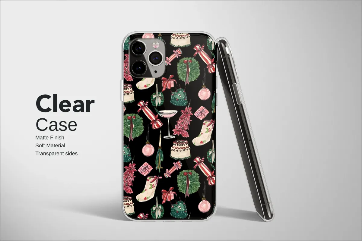Clear Clear Glitch Art Christmas Collage Festive Holiday Pattern Phone Case Cover for iPhone 17 Pro Max 16 15 13 Samsung S25 S24 Pixel 8703