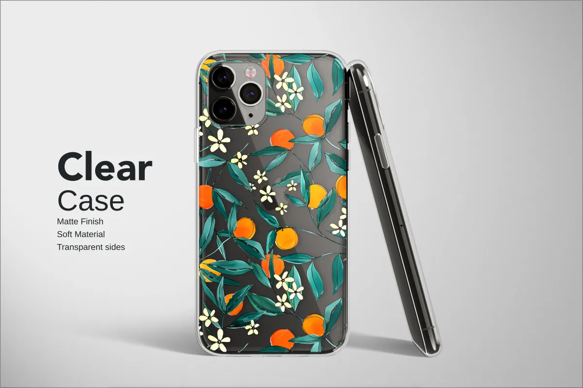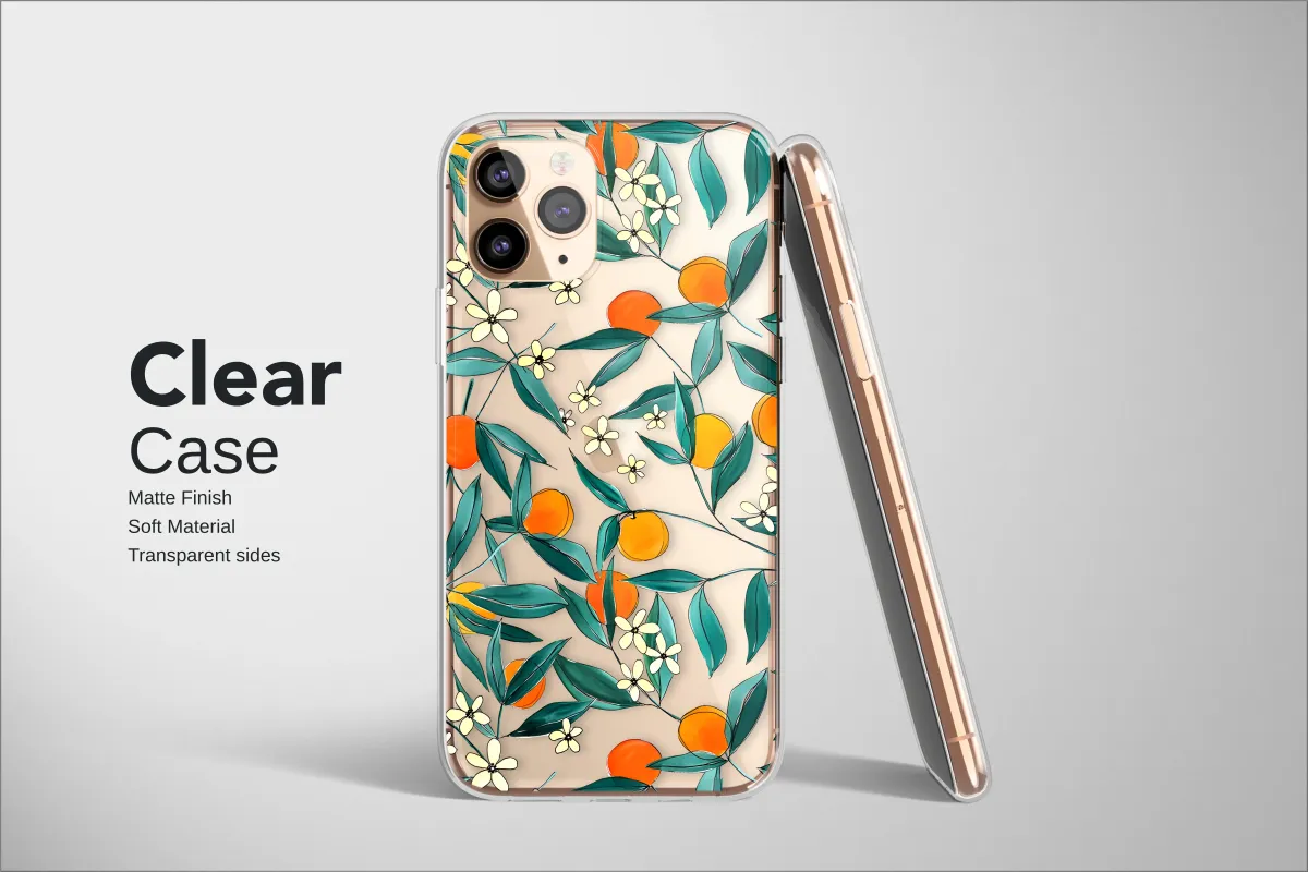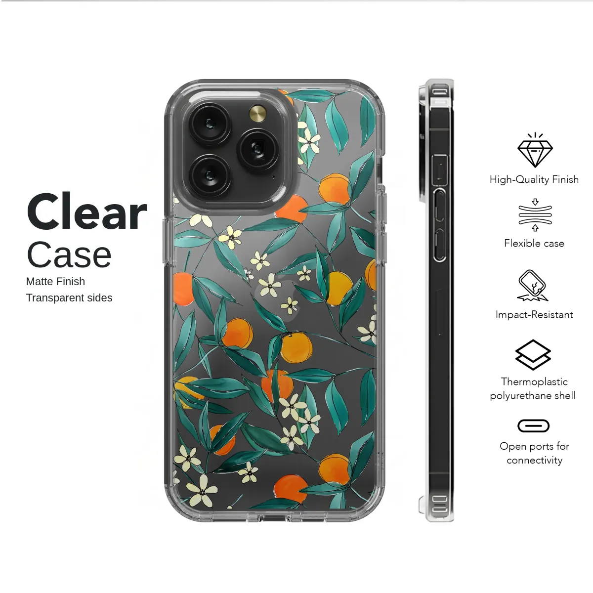 Clear Clear Glitch Art Orange Grove Dark Botanical Citrus Illustration Phone Case Cover for iPhone 17 Pro Max 16 15 13 Samsung S25 S24 Pixel 9172