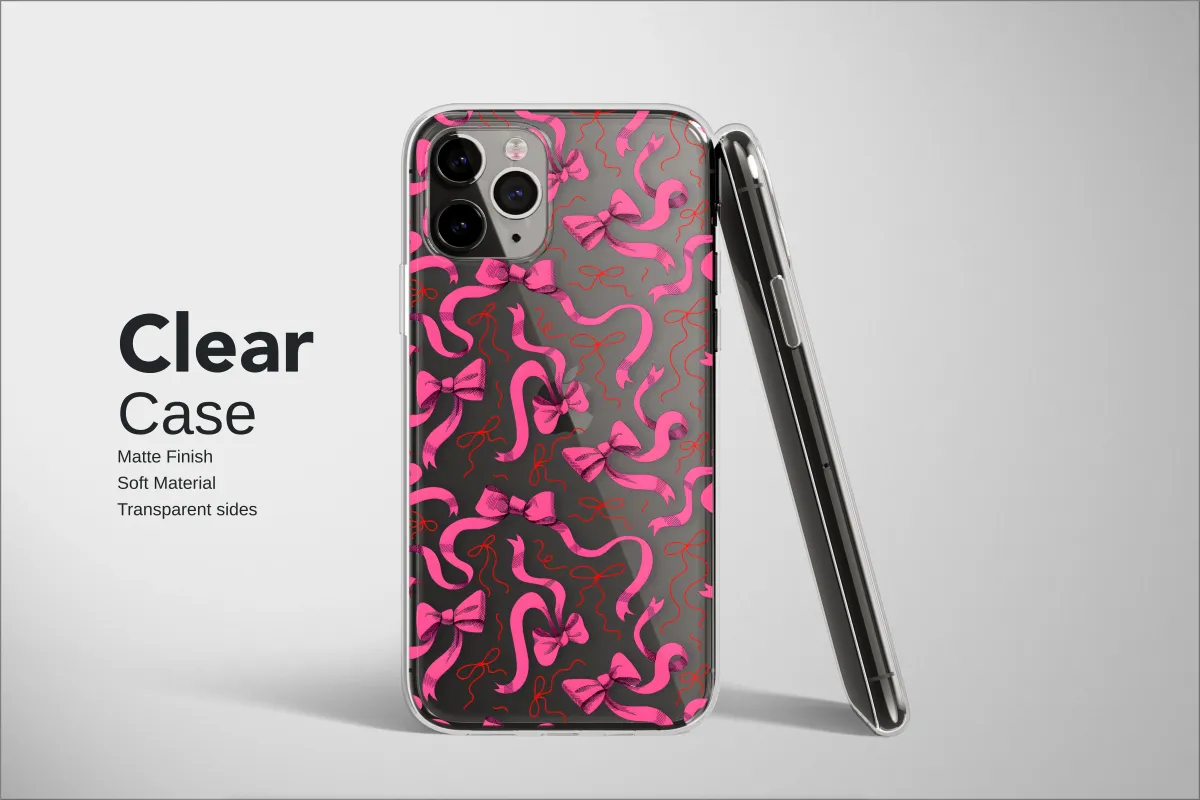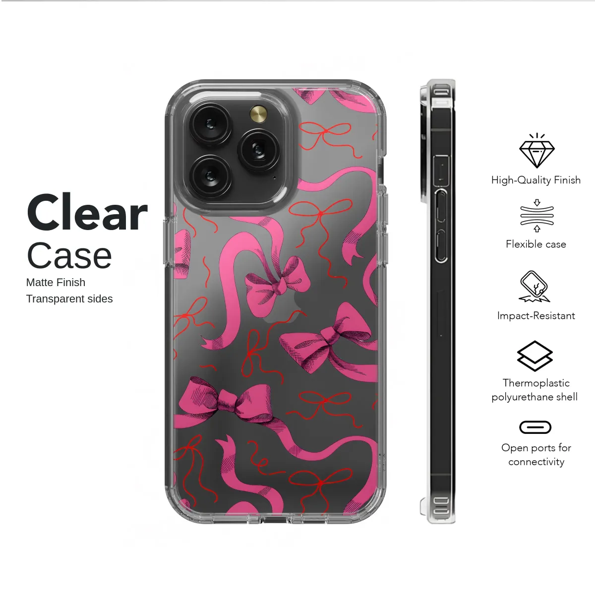Clear Clear Glitch Art Pink Ribbon Y2K Aesthetic Graphic Phone Case Cover for iPhone 17 Pro Max 16 15 13 Samsung S25 S24 Pixel 8207