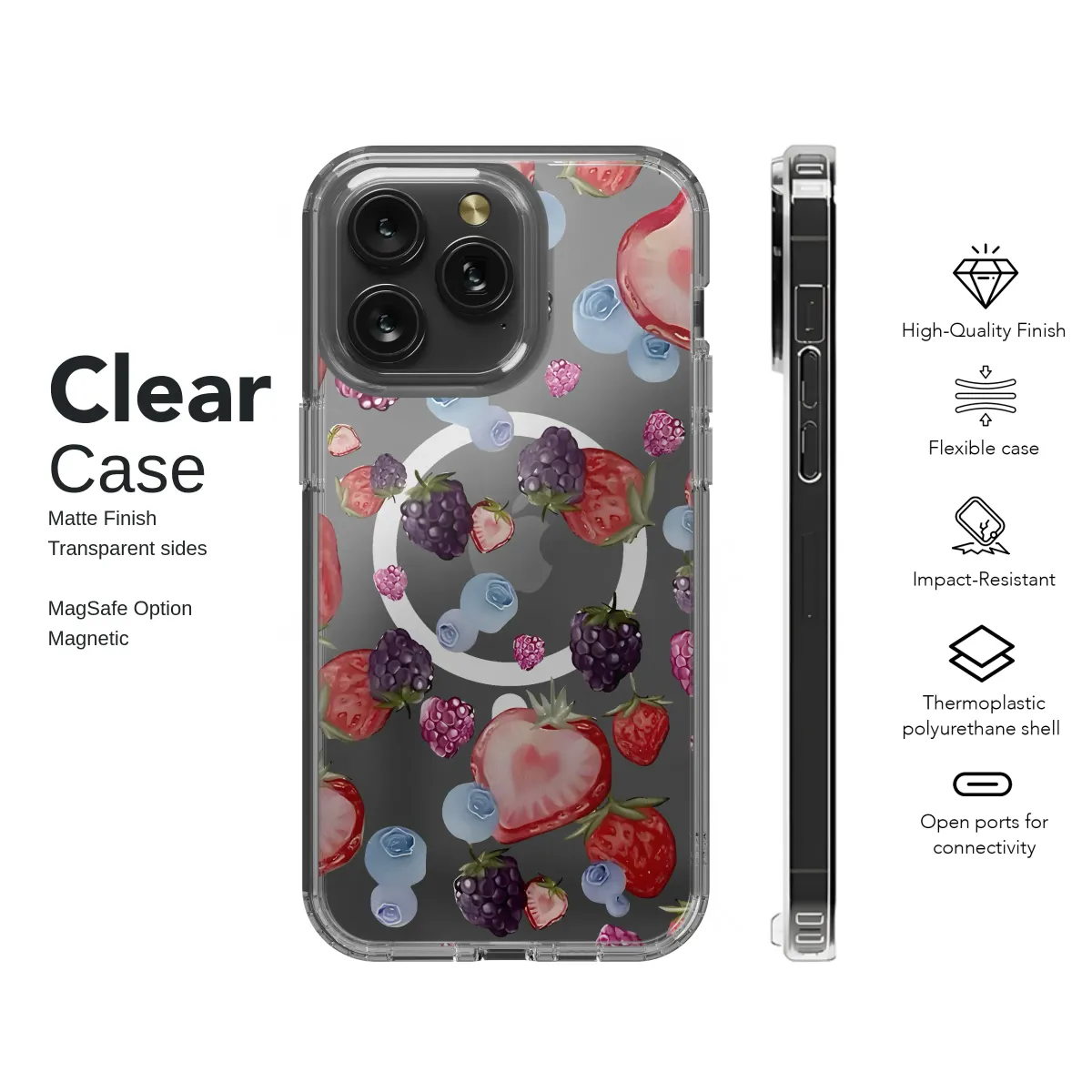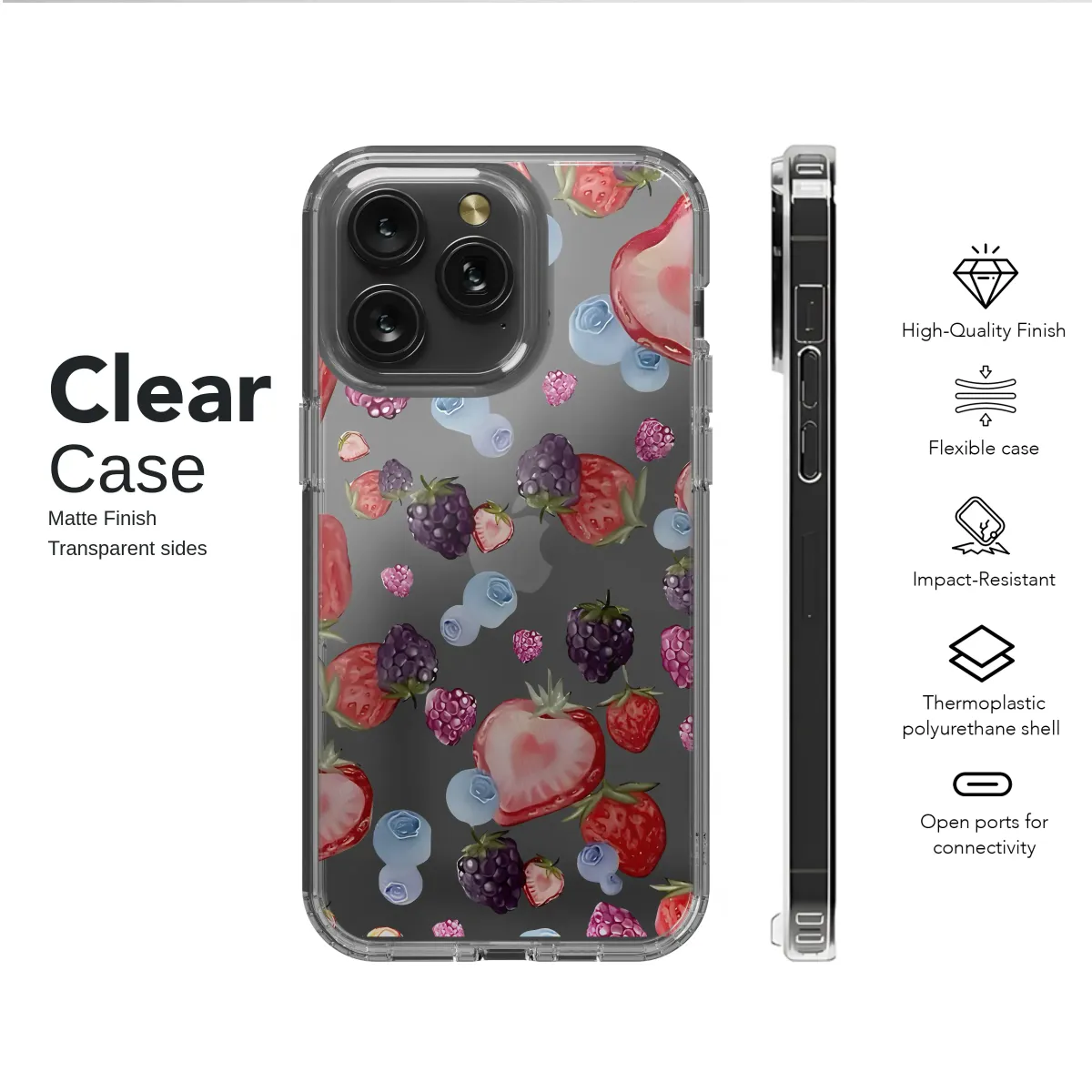 Clear Clear Glitch Art Strawberry Berry Fruit Watercolor Pattern Phone Case Cover for iPhone 17 Pro Max 16 15 13 Samsung S26 S25 Pixel 9581